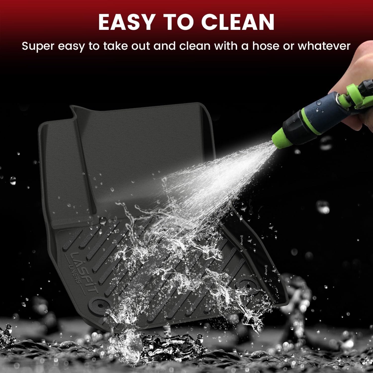 - ăDurable & Safe MaterialăLASFIT all weather floor mats for Malibu use elastic TPE (Thermoplastic Elastomer), no foul odor is produced even at high temperatures, soft touch and exquisite finish. The LASFIT floor mats for cars are skid-proof and recyclable.