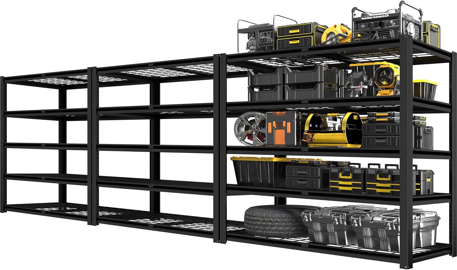 - ă10 Minutes Easy AssemblyăThe industrial shelving adopts a bolt-free interlocking design and can be quickly assembled in just 10 minutes. It comes with a rubber mallet and gloves to make the installation process simple and efficient. Tips: Evenly distribute the items on each shelf to ensure the stability and load-bearing capacity of the garage shelves