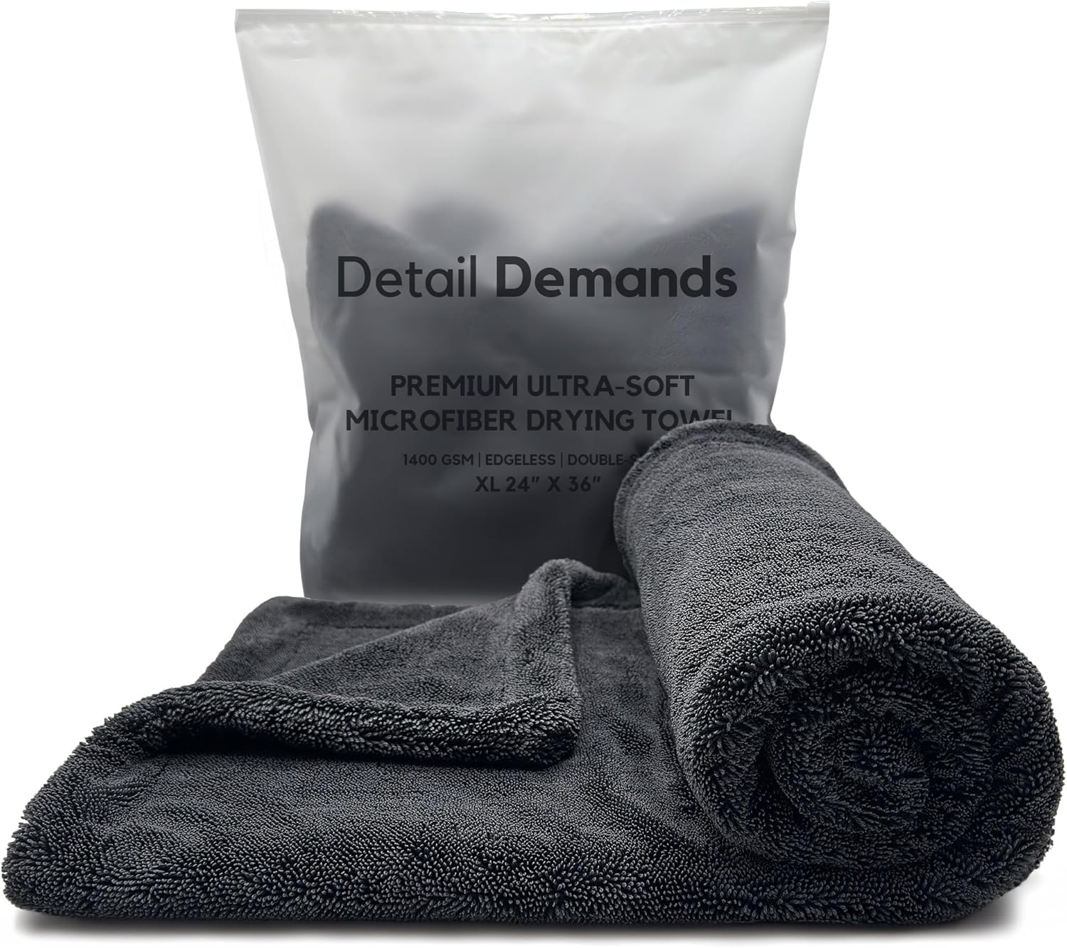 Extra Large Car Drying Towel - 1400 GSM Edgeless Twisted Loop Design - 70/30 Blend Microfiber Towels for Cars, Trucks, SUVs - Superior Absorption, Streak-Free - 24" x 36", Black