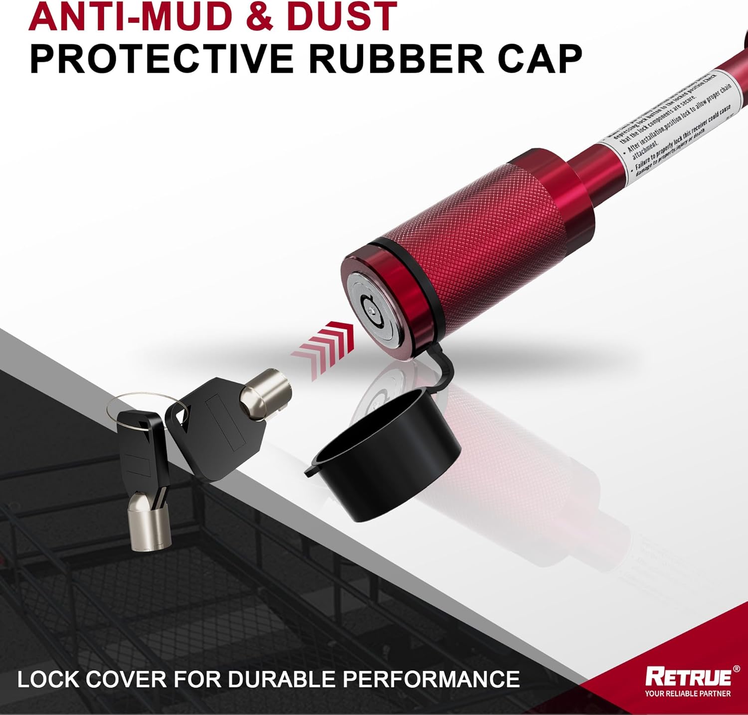 RETRUE Trailer Hitch Locks, 5/8" Locking Hitch Pin for 2 Inch and 2 1/2” Receiver Class III IV Hitch, Tow Hitch Lock with Keys O-Rings, Trailer Accessories for Outdoor,Red