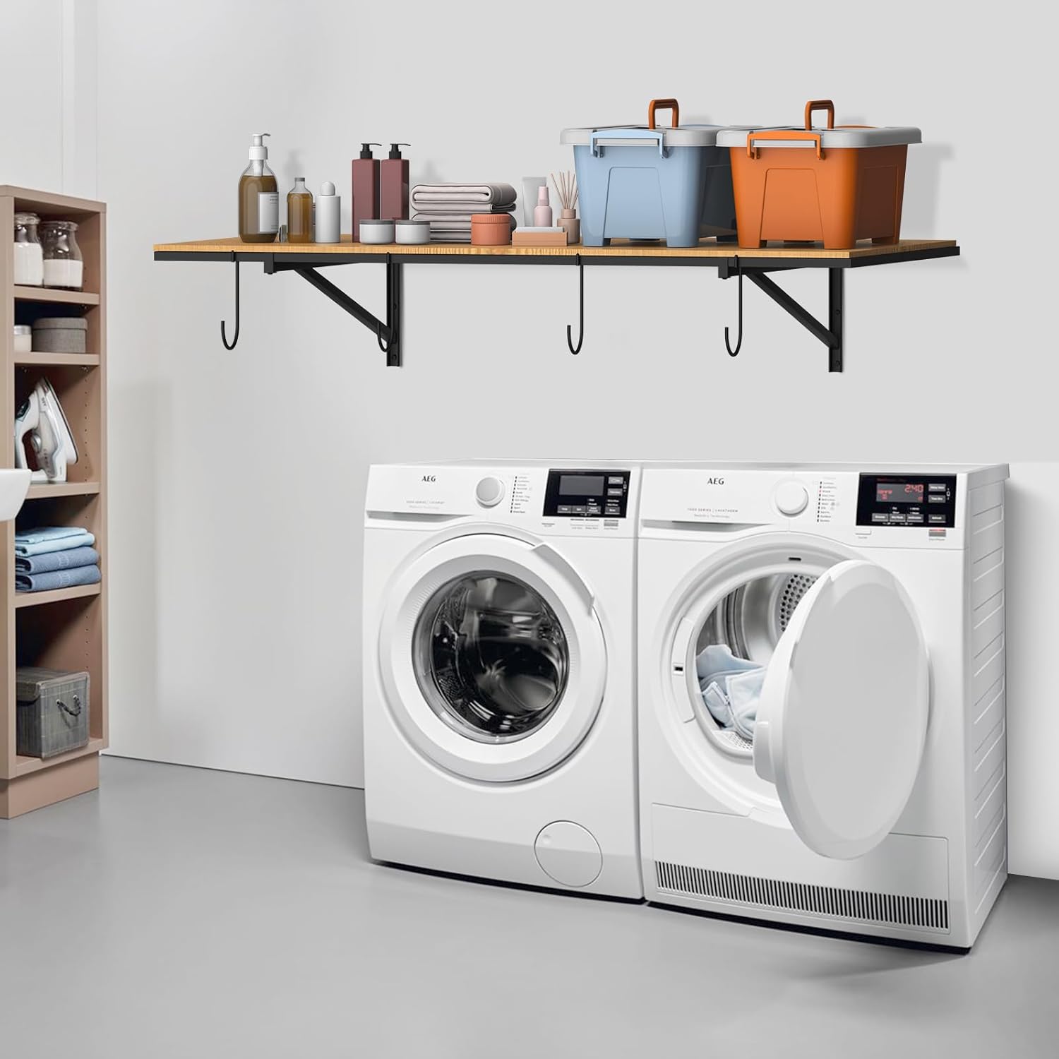 - 🔧Enhanced with Hooks: Each shelf in the PEKGRIL Garage Wall Shelving Set is equipped with 4 versatile hooks, engineered to optimize your storage capacity. This added feature not only multiplies your storage options but also aids in creating a more organized and accessible storage environment.