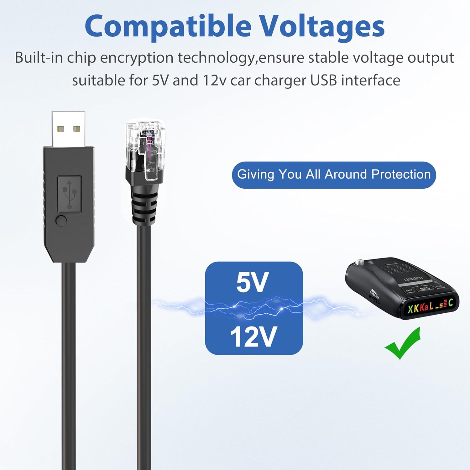 - 【Radar Detector Cable】USB2.0 to RJ11 plug radar detector power cable supply specially powered for 12V radar detectors,used to connect cigarette lighter,car charger, ac adapter etc., to ensure your travel safety.