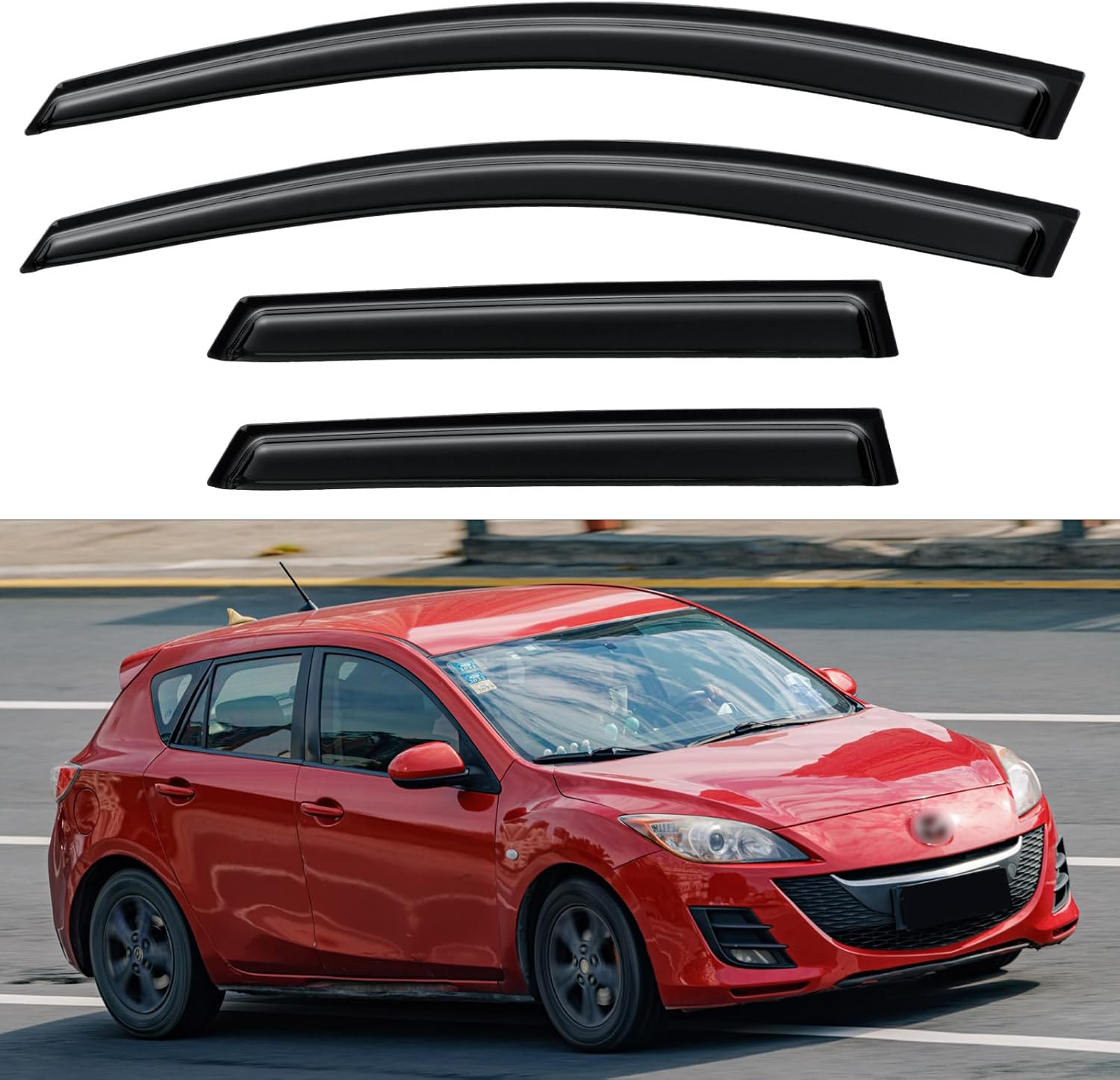 - ăPerfect FităYQAUTEC 4Pcs Out-Channel/Outside Adhensive Window Visors Rain Guards Shield fit for 2010 2011 2012 2013 10 11 12 13 Mazda 3 Hatchback, Side Window Vent Wind Deflectors Visors Shades. (NOT for Mazda 3 Sedan)