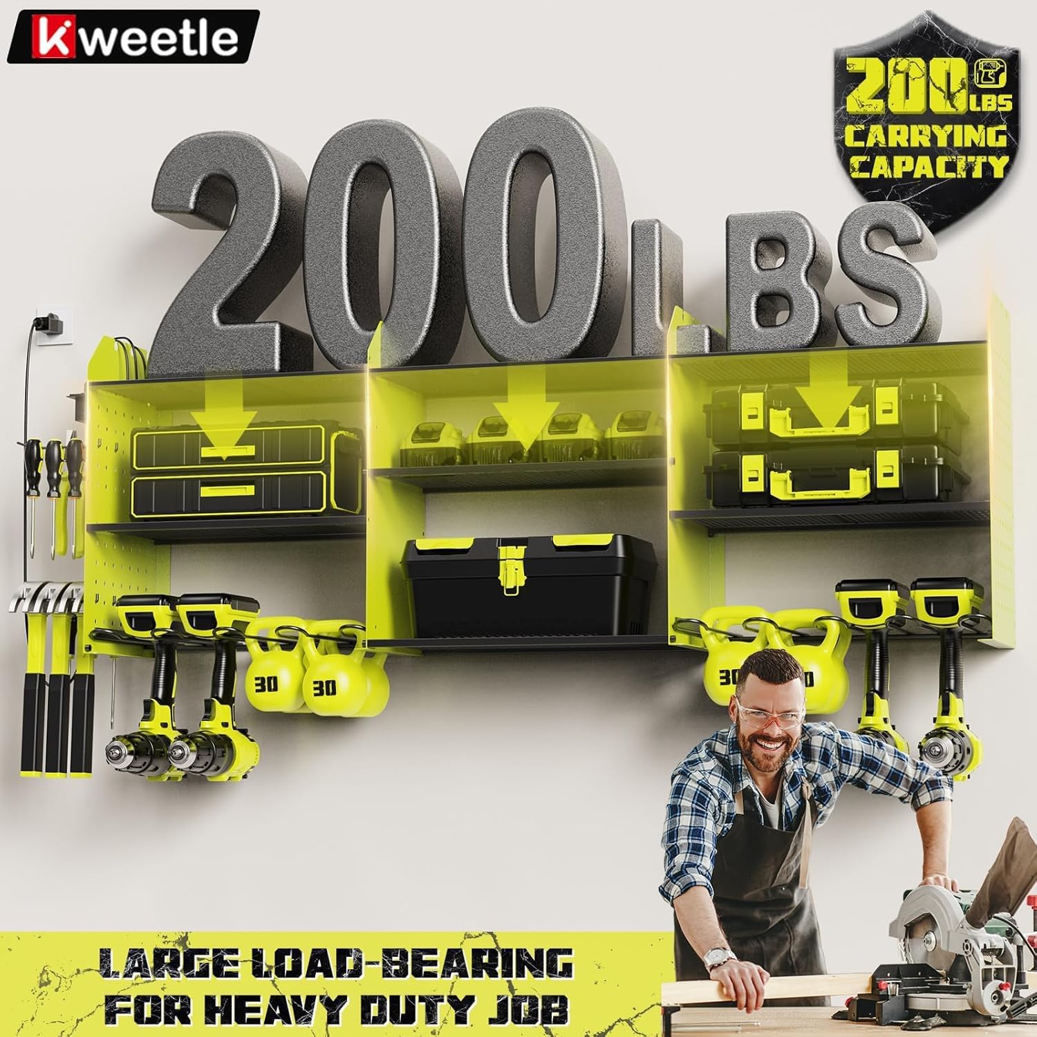 - 【MAXIMUM WEIGHT UP TO 200 LBS】 The power tool organizer wall mount is crafted with a strong alloy frame and double-layered metal plates, ensuring long-lasting durability and it has a weight capacity of up to 200lbs It serves as a versatile and dependable holder for a wide range of tools and accessories, making it an essential addition to any workspace.