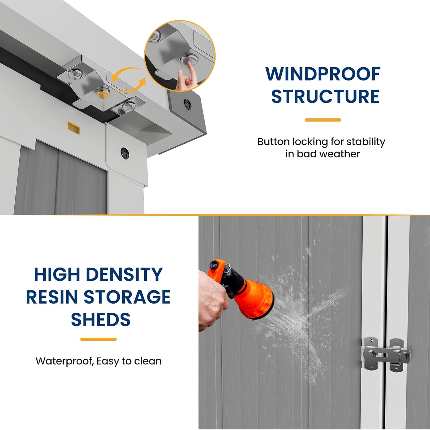 - 【EASY TO USE】 The top cover of the resin shed is equipped with a pressure pump control for opening and closing, with a removable chain and a windproof latch, and many more design details for your convenience.