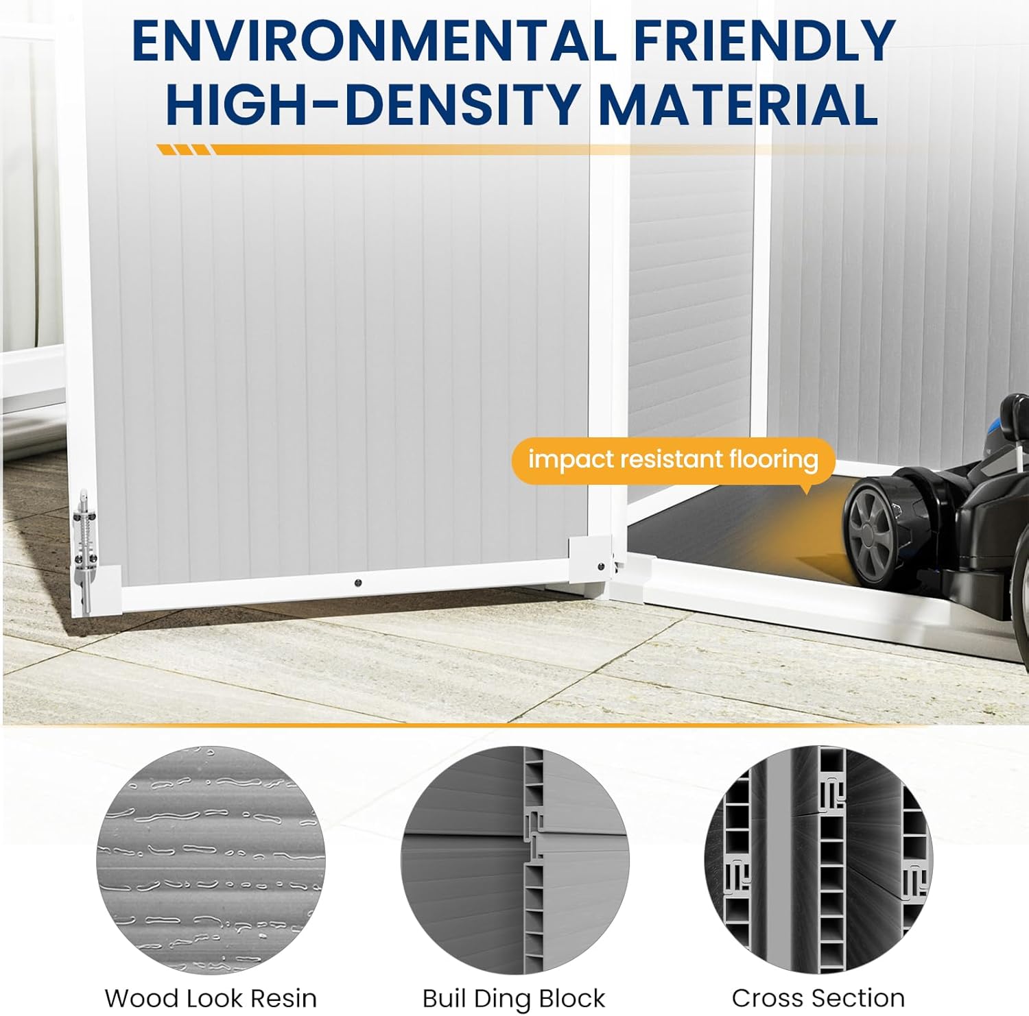 - 【DOUBLE-WALL PANELS】The outdoor storage shed features dual-wall resin panels that are processed with advanced technology for stronger wind & impact resistance; It won’t easily bend or puncture; Enjoy a secure place to store your valuable tools and equipment.