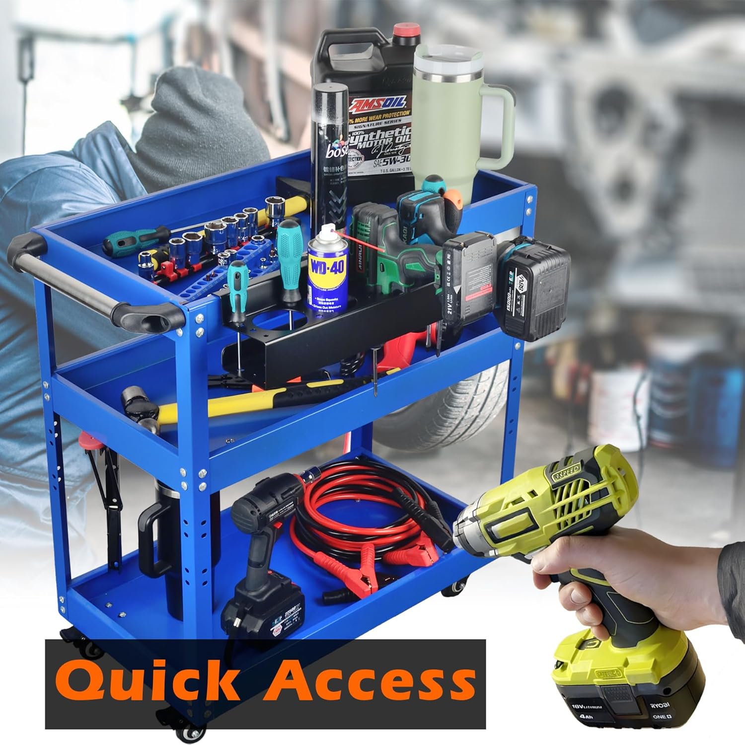 - Quick Edge-mounted Tool Rack: No drilling holes required; insert and swivel the edge hooks into the edge of the rolling tool chest or utility storage carts, more space to move around, and tackle projects with ease