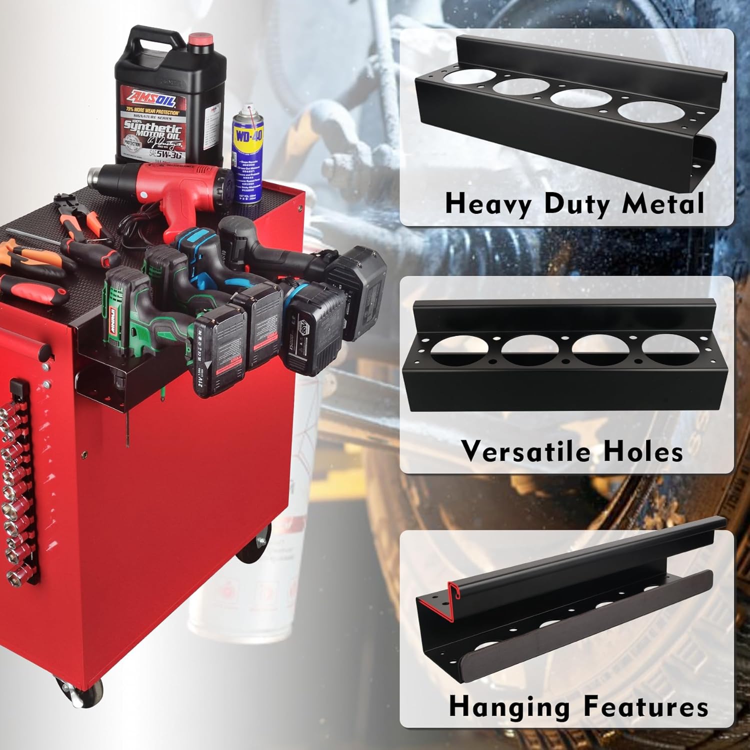 - Efficient Storage Tool Stand: The rack is perfect for organizing cordless drill drivers,lacquer spray and associated accessories. Ideal for rolling tool carts, workbench sides, and utility storage carts