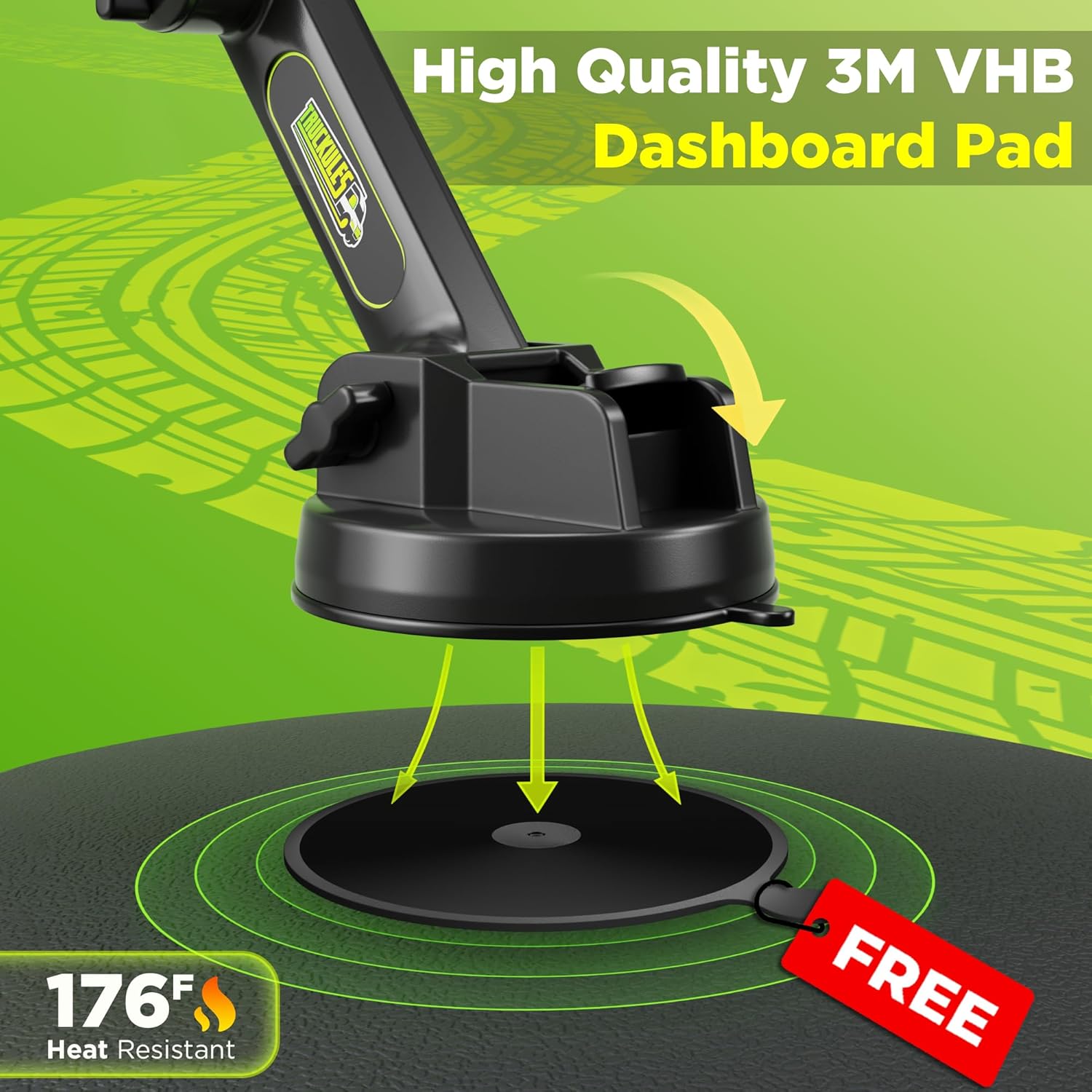 Phone Mount for Truck Phone Holder for Truck - Heavy Duty Suction Cup + Dashboard Pad, Mobile Device Holder for Dashboard Window 16.9 inch Long Arm, iPhone Samsung Compatible, Big Rig Trucker, Black