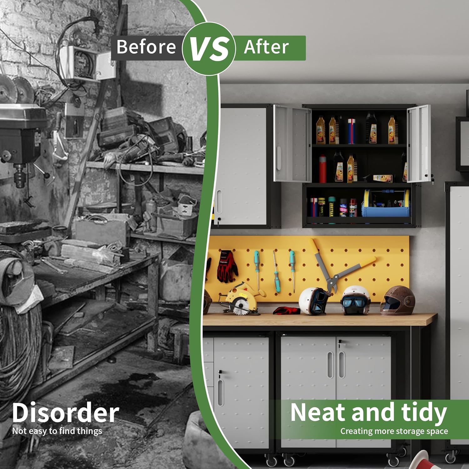 - Multi-scene Use: Wall cabinet is suitable for home, garage, warehouse, kitchen, tool room, especially for garage and tool room, for you to place tools and daily necessities to provide sufficient safe storage space, keep the room clean.