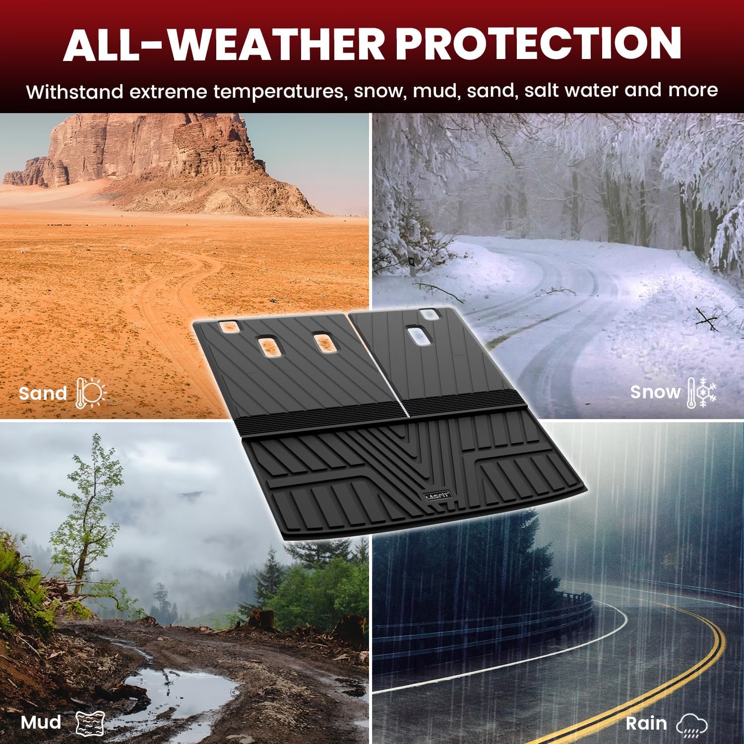 - FIRM YET FLEXIBLE - LASFIT Mats are made of innovative material, allowing our floor liners last long, way more elastic that they won't curl or end up buckling.