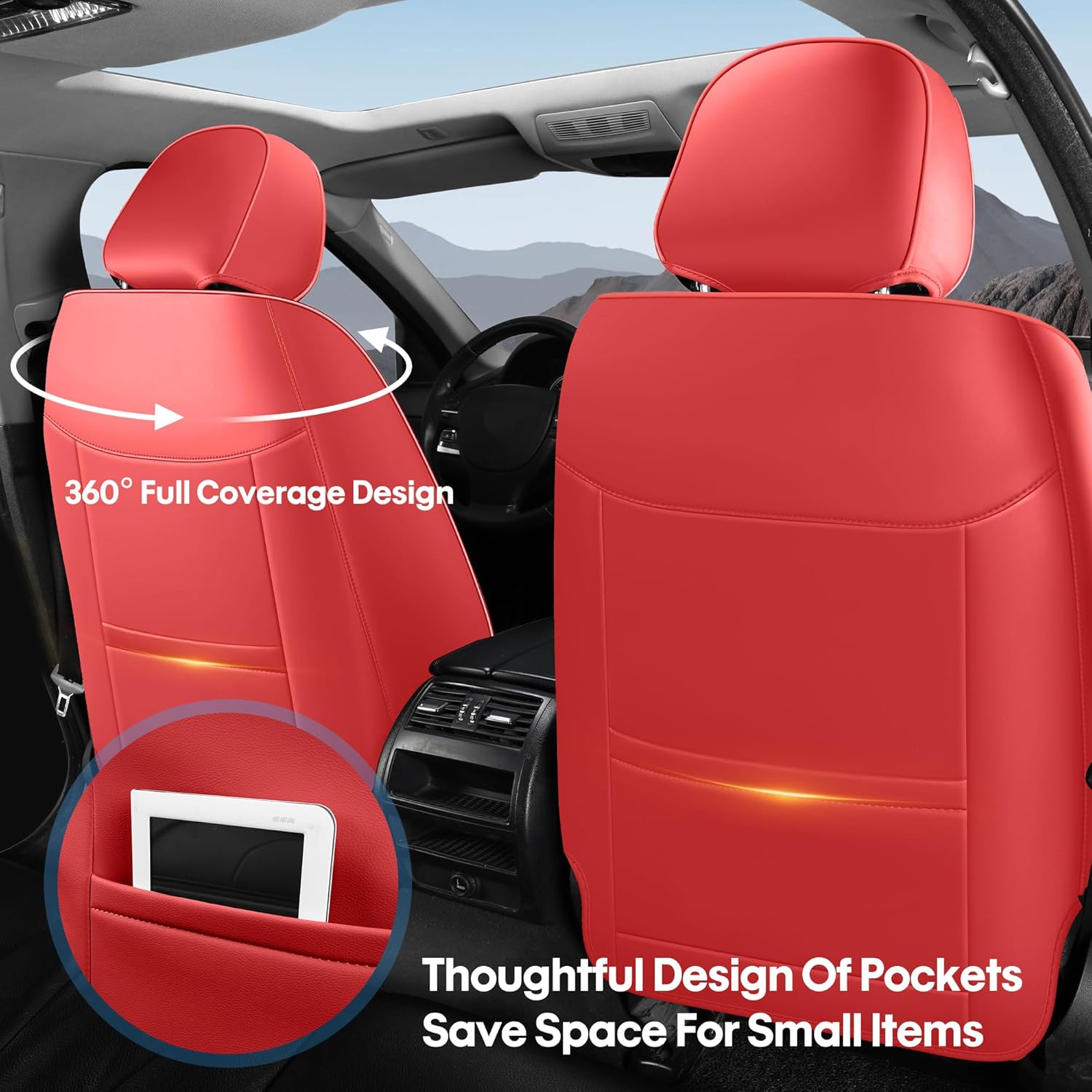 AOOG Car Seat Covers Full Set, Leather Seat Covers for Car, Waterproof Car Seat Protector with Lumbar Support, Automotive Seat Covers Universal Fit for Most Cars SUV Trucks (Full Set, Red)