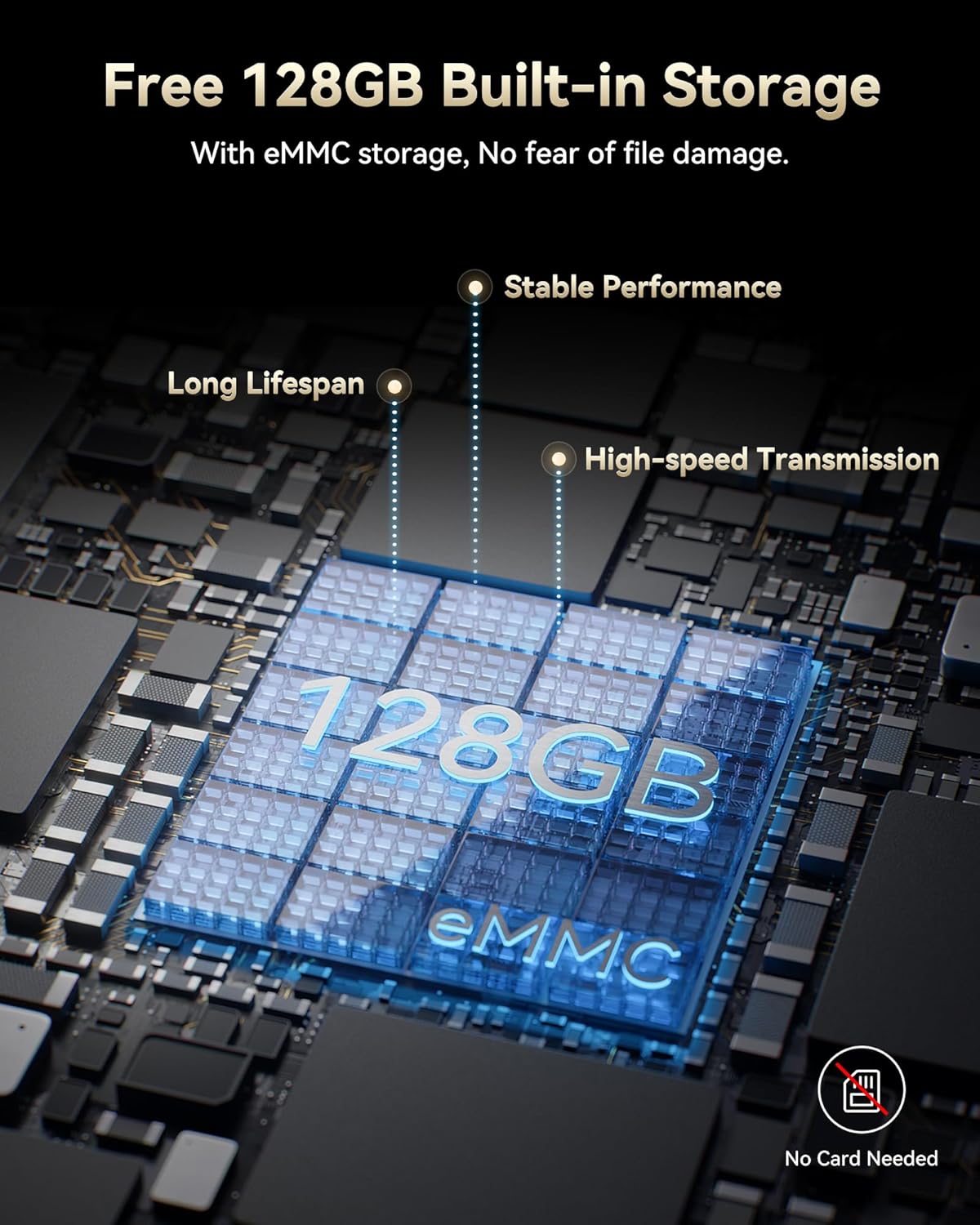 - [Upgraded 128GB eMMC Storage Instead of Card] The 4K car dash cam has built-in 128GB eMMC storage, supports 5 hours loop recording, not need to purchase memory card. Besides the high-level write and read speed, car dash cams with eMMC can avoid video damage and non-recording due to impact. Leave the card behind you, REDTIGER offers the most smart car security camera.