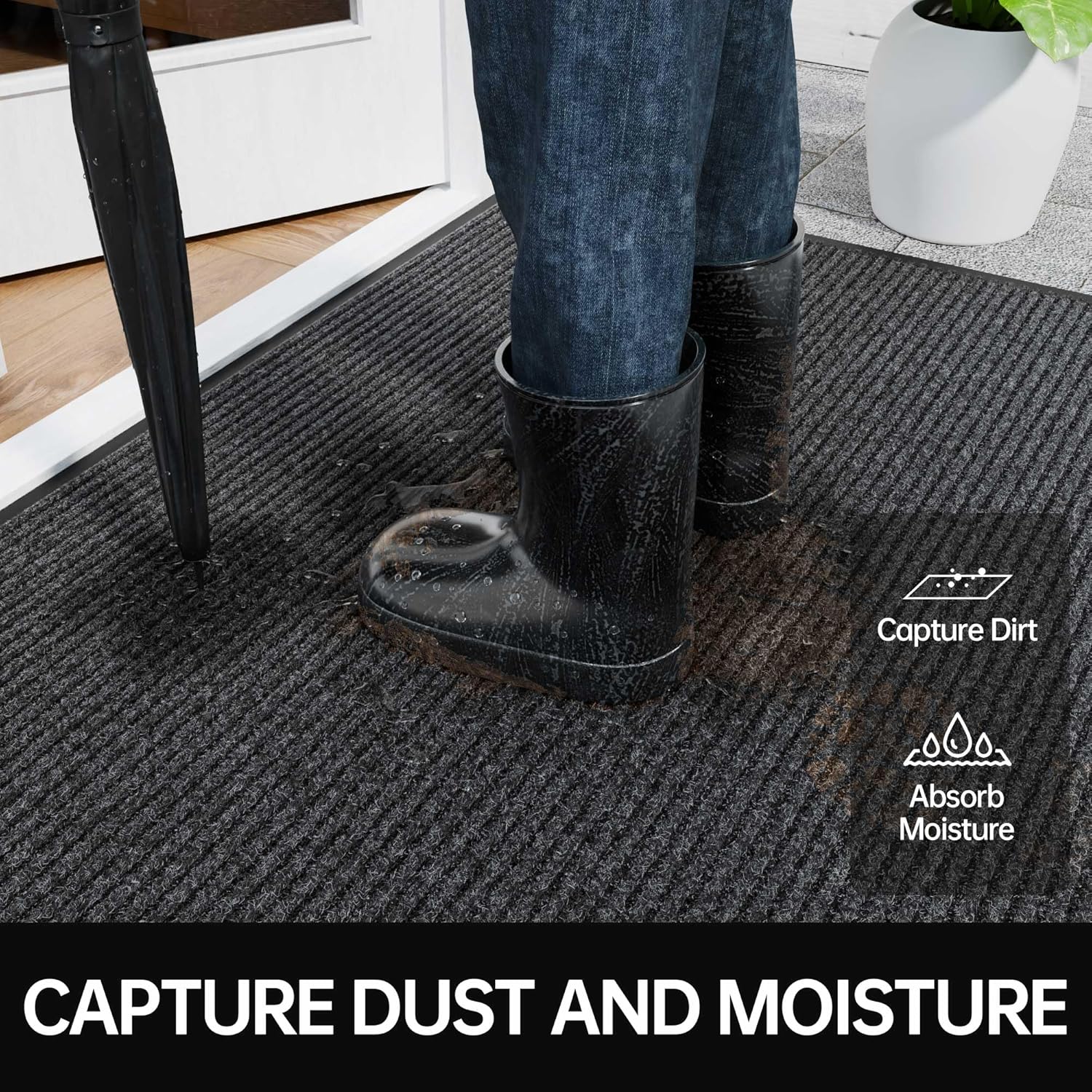 - Deeply Absorbing and Capturing Dirt: Our front door mat with deep grooves effectively capture dirt, mud and moisture, keep your home entrance neat and tidy. Outside door mat suitable for all seasons and weather