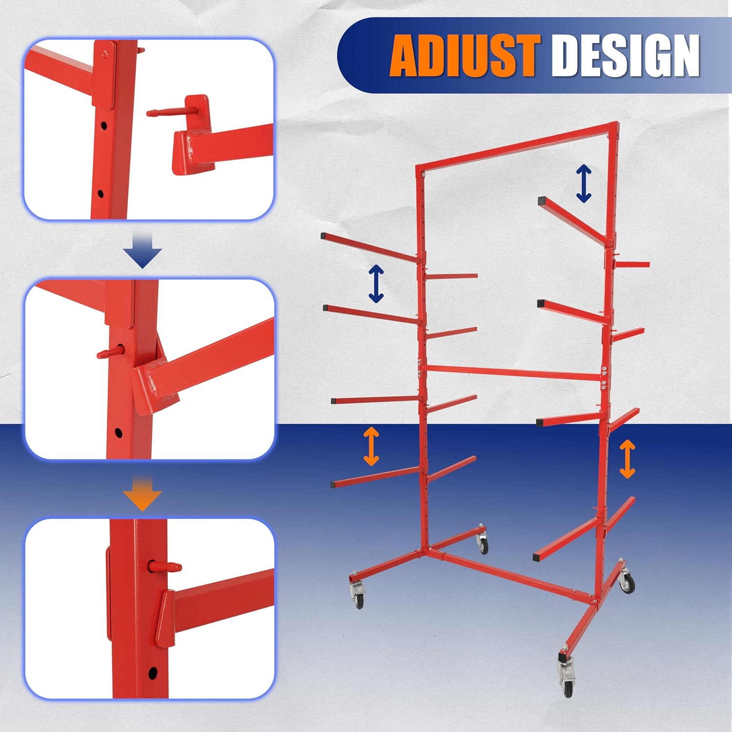 - Design - Designed with a double-sided layout, this mobile bumper storage rack allows for efficient organization and easy access to various automobile parts, maximizing storage space while minimizing clutter in your workspace