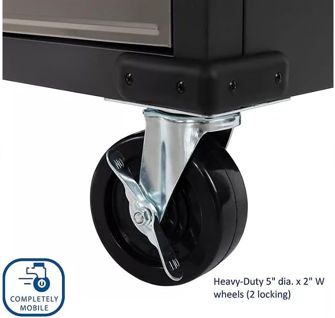 - Commercial grade steel construction with stainless steel lockable drawers & cabinet door