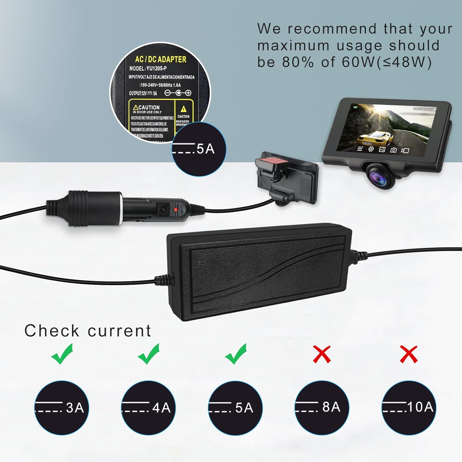 - Included Components : 1 x 12V 5A 60W cigarette lighter adapter to wall plug