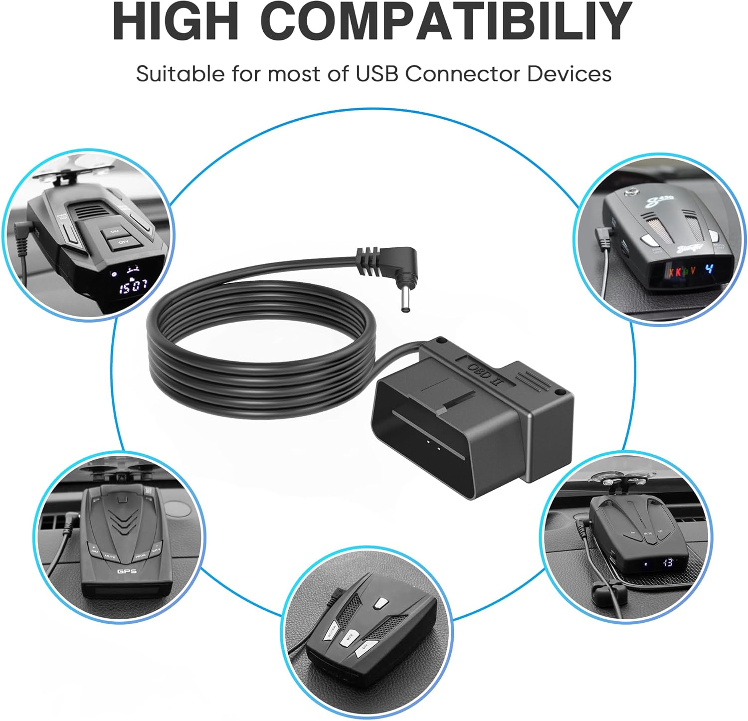 - 【Tidy & Space Saving】: By using this OBD Power Cable for Radar Detector,you can easily hide the wire and cable to make your car looks cableless and tidy; also this OBDII Adapter Cable doesn't occupy your car's cigarette lighter port and allow you can use the port to charge other devices in your car.