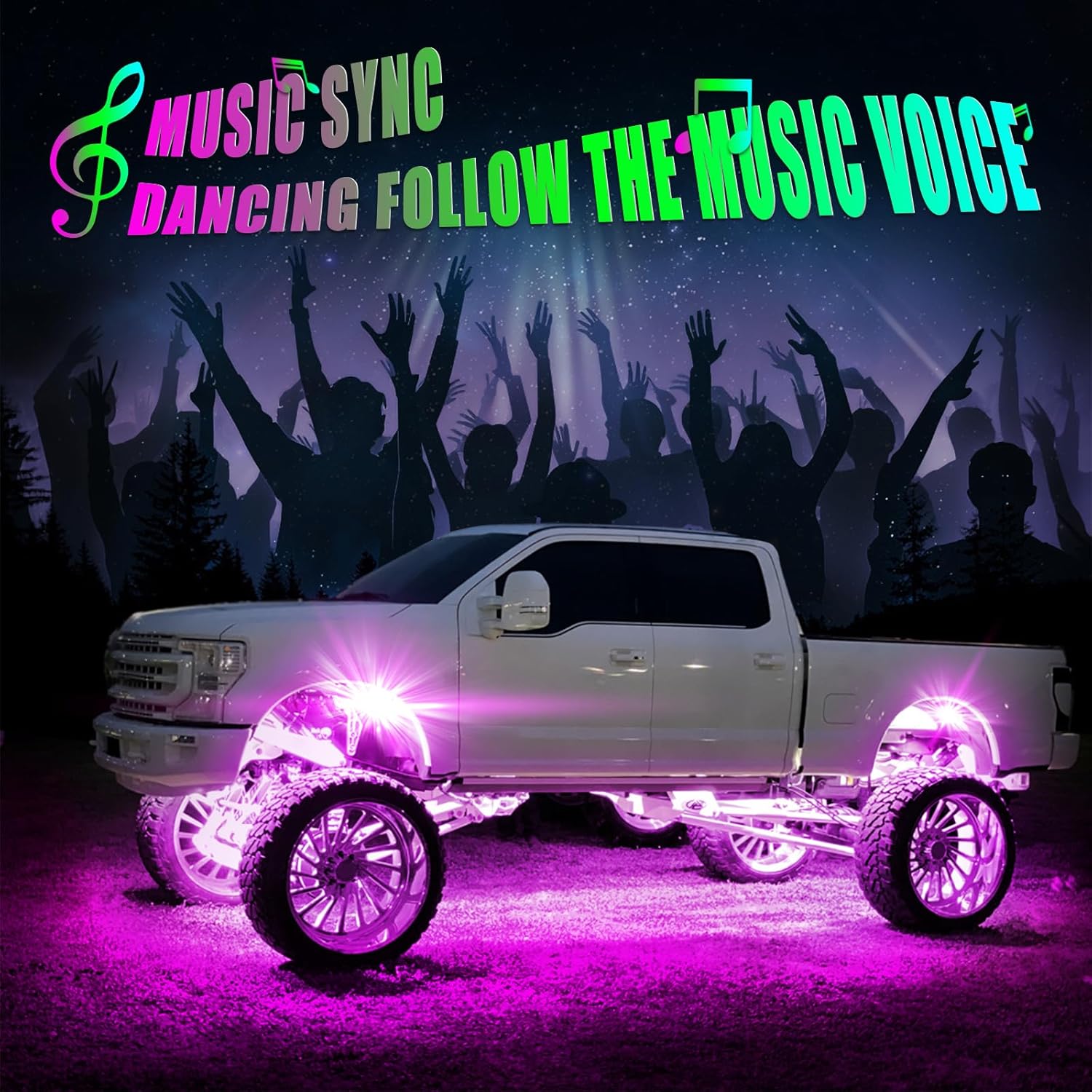 YiLaie RGB LED Rock Lights Kit 8Pods with APP/RF Remote Control, Upgraded Underglow Multicolor LED Light Pod with Flashing Music Mode, Rock Lights for Truck ATV UTV RZR SUV, IP68
