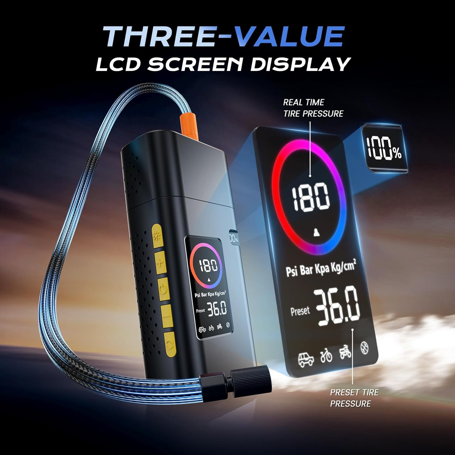 180PSI Tire Inflator Portable Air Compressor, 26000mAh Portable Tire Inflator for Car,5X Fast Electric Bike Air Pump with Digital LCD Pressure Gauge/LED Light/Power Bank, Bike, Motorcycle, Ball