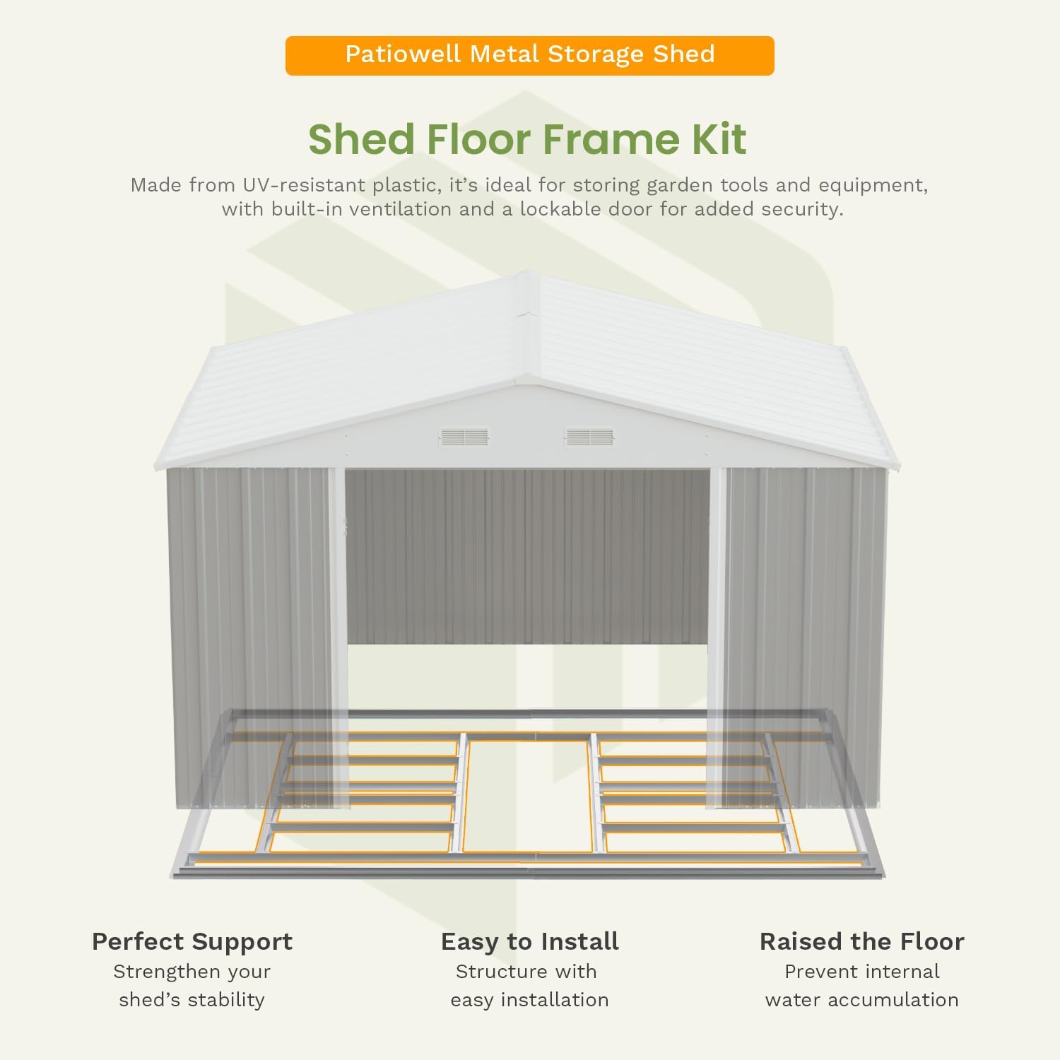 - Stable Floor Frame: The frame can increase the stability of the storage shed and isolate the flooring from the ground, preventing the flooring from being damaged by moisture.