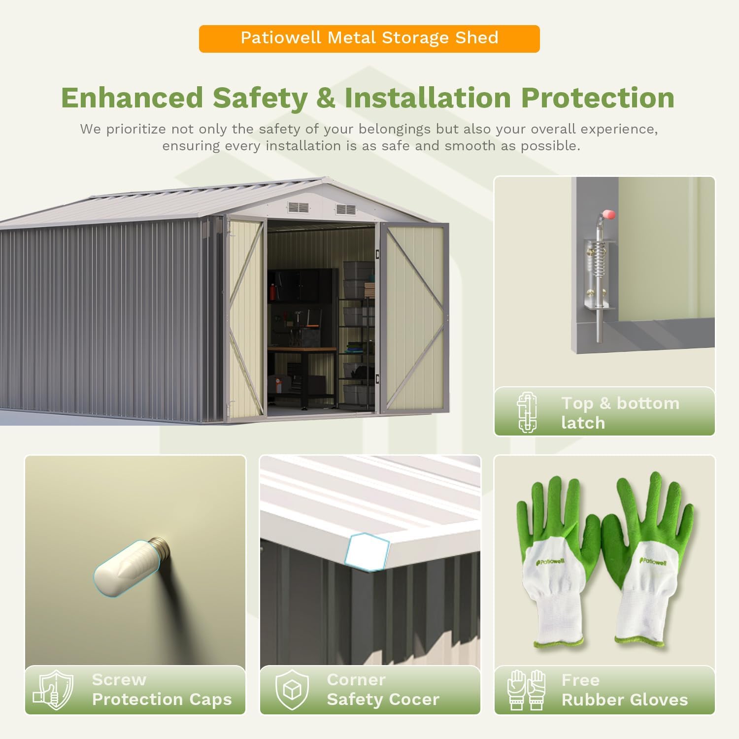 - Durable Metal Construction: Built with robust and thicker metal panels, this shed offers unparalleled strength and sturdiness, ensuring long-term reliability and protection for your belongings.