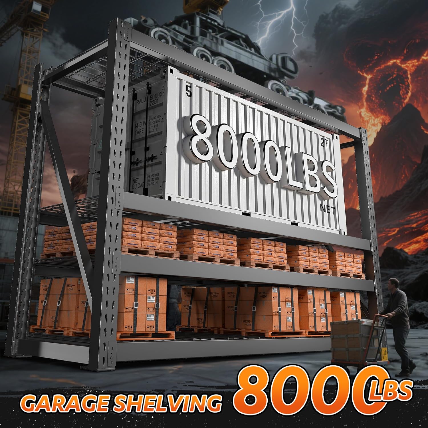- 【8000LBS Capacity Garage Shelving Heavy Duty】Bepatio 77” W storage shelves has a total weight capacity of up to 8000 pounds, 4 extra support bars and side reinforcements for added stability. All storage needs for heavy items can be met.