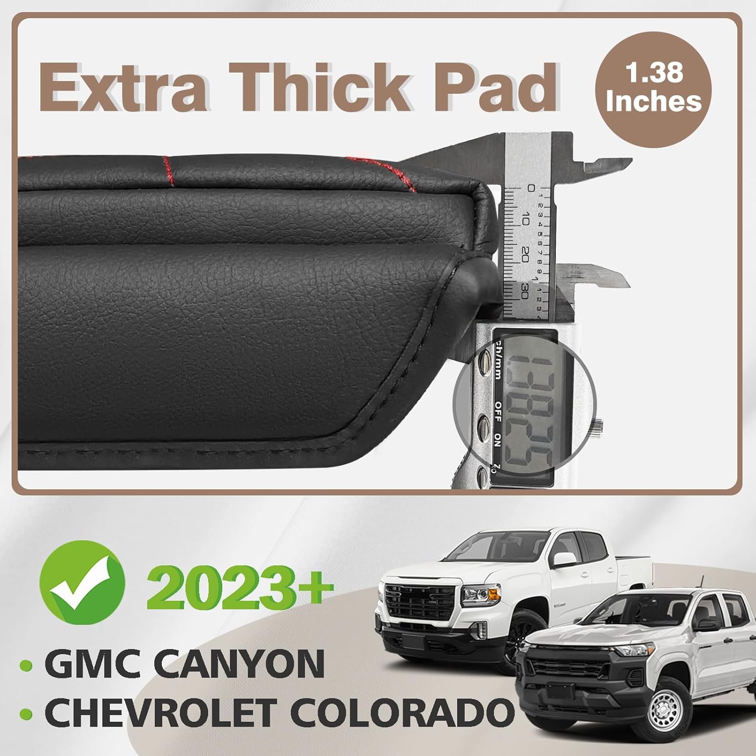 Muslogy Center Console Armrest Cover Compatible with Chevrolet Colorado/GMC Canyon 2023-2025 Accessories Arm Rest Cushion Anti-Scratch Middle Console Lid Protector 1-Inch Extra Thick(Red Stitching)