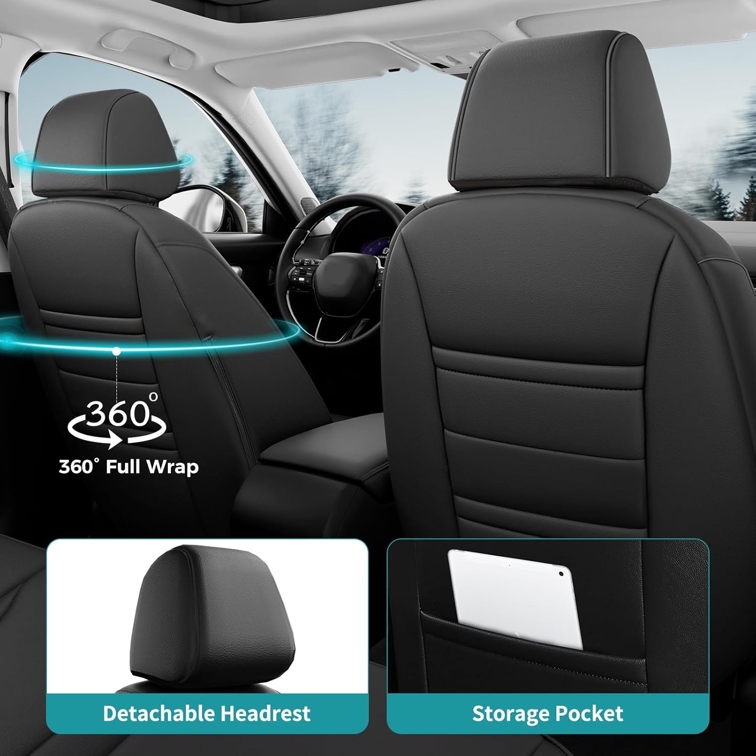 - Faux Leather - Our car seat covers are made from faux Nappa leather, providing superior protection for car seat covers. Designed with comfort, aesthetics, and longevity in mind, these leather seat covers are also waterproof, stain-resistant, and easy to clean. They are an excellent choice for individuals seeking to upgrade or protect their car's upholstery