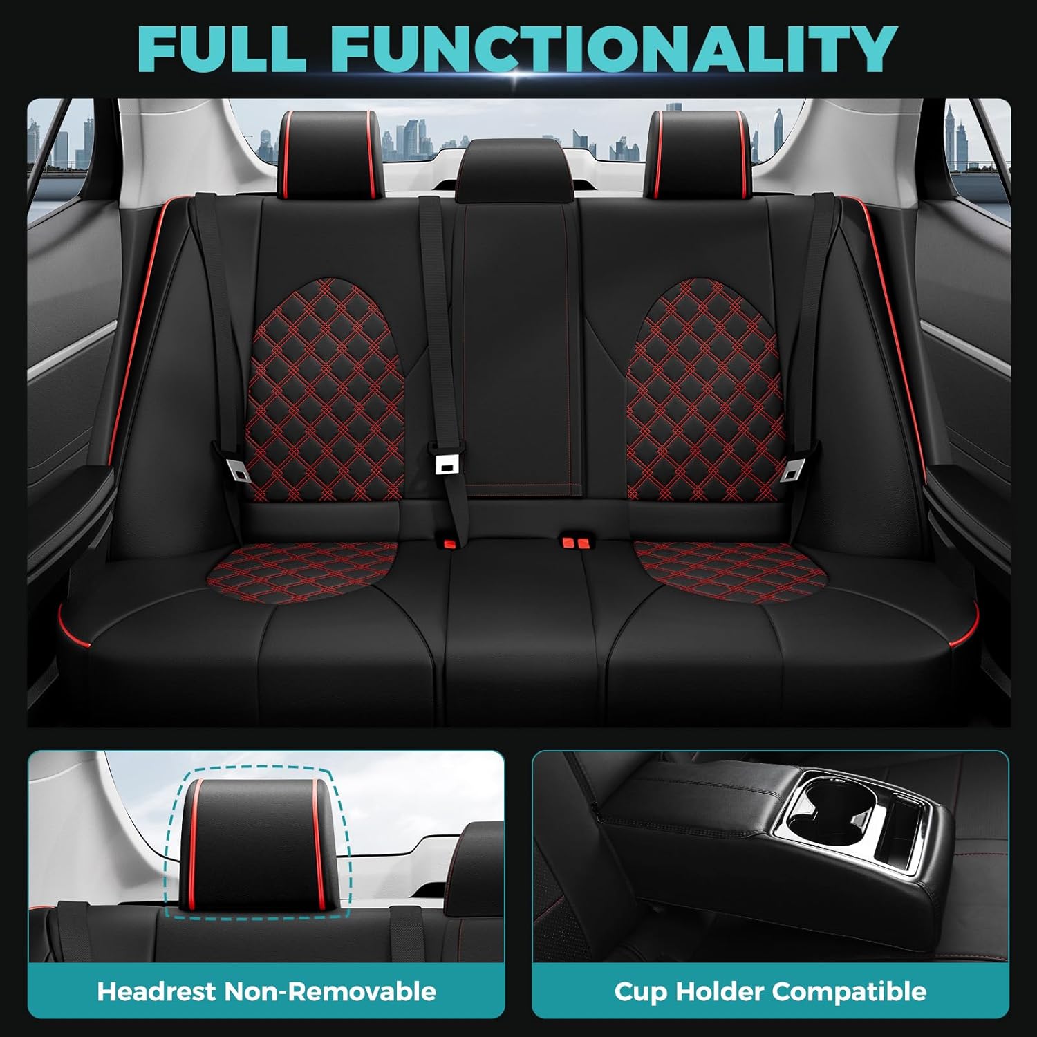 for Toyota Camry Seat Covers Hybrid LE SE 2018 2019 2020 2021 2022 2023 2024 - Custom Car Seat Covers Full Set, Waterproof Breathable Seat Cover for Cars, Leather Cushion Protectors Black Red