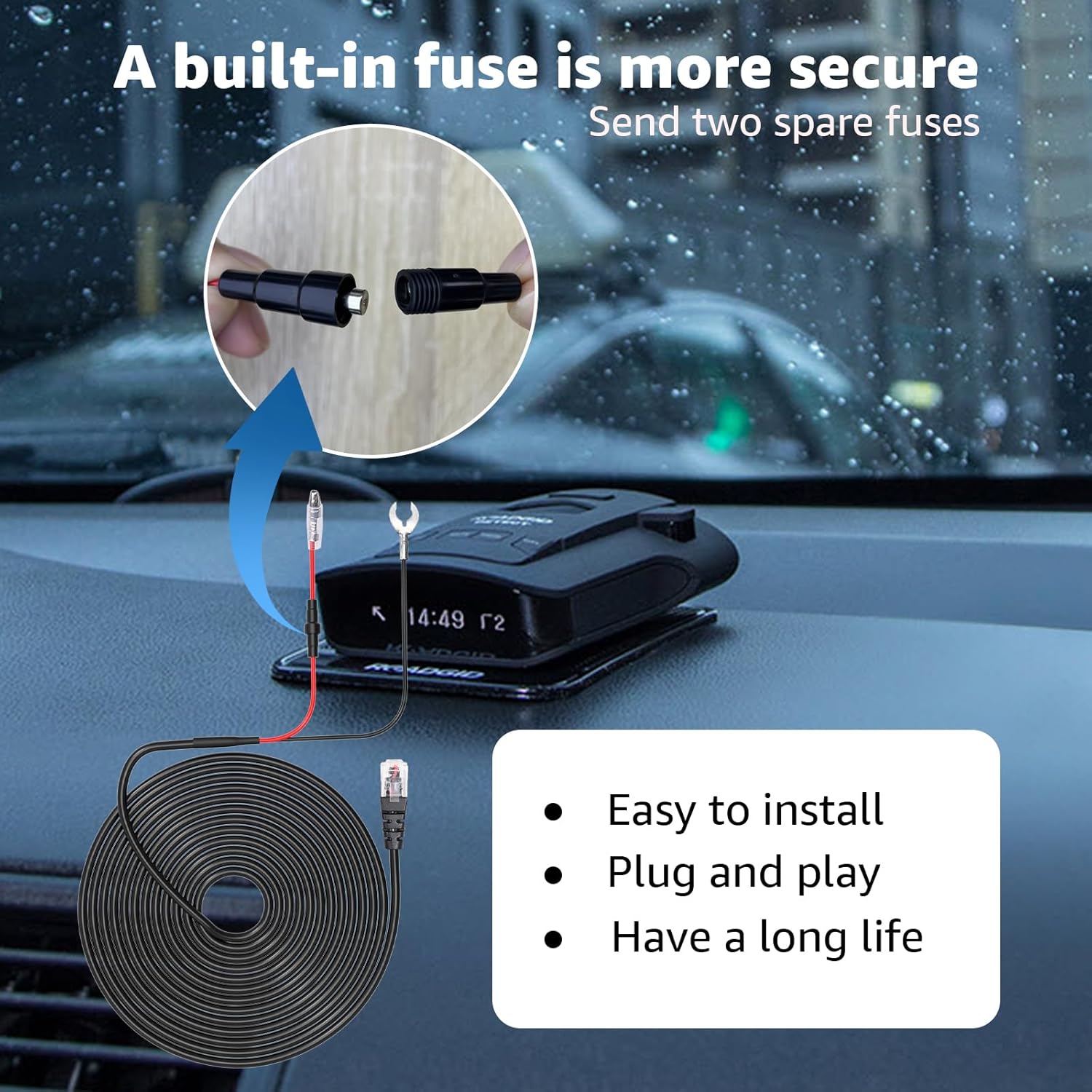 Radar Detector Hardwire Kit with RJ-11 Telephone Style Jack Direct Wire Wiring Kit Compatible with Escort Valentine One Uniden Beltronics Cobra Multiple Fuse Sizes Power Cord Cable