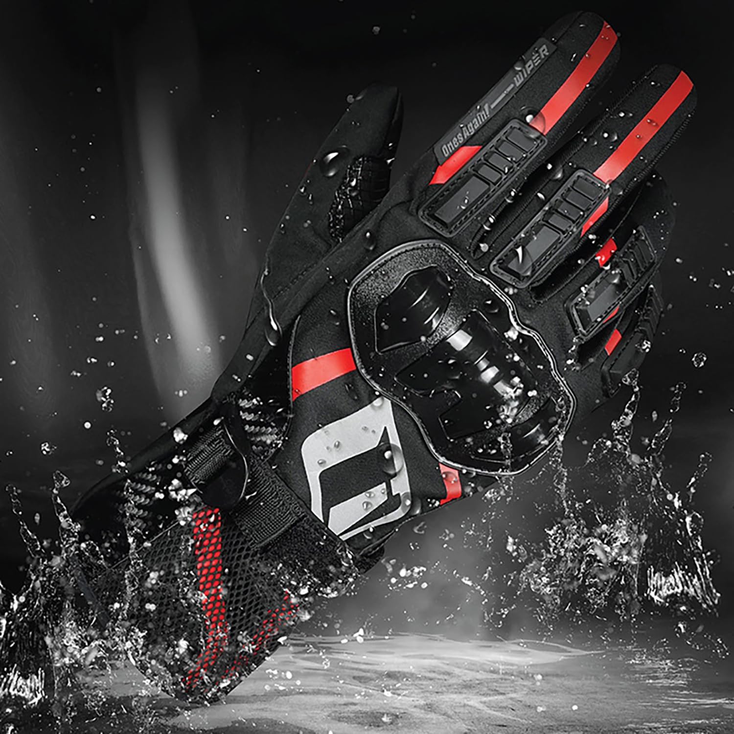 - Waterproof Construction: These motorcycle gloves are designed with a waterproof and windproof outer shell, ensuring your hands stay dry and protected in wet or snowy conditions.