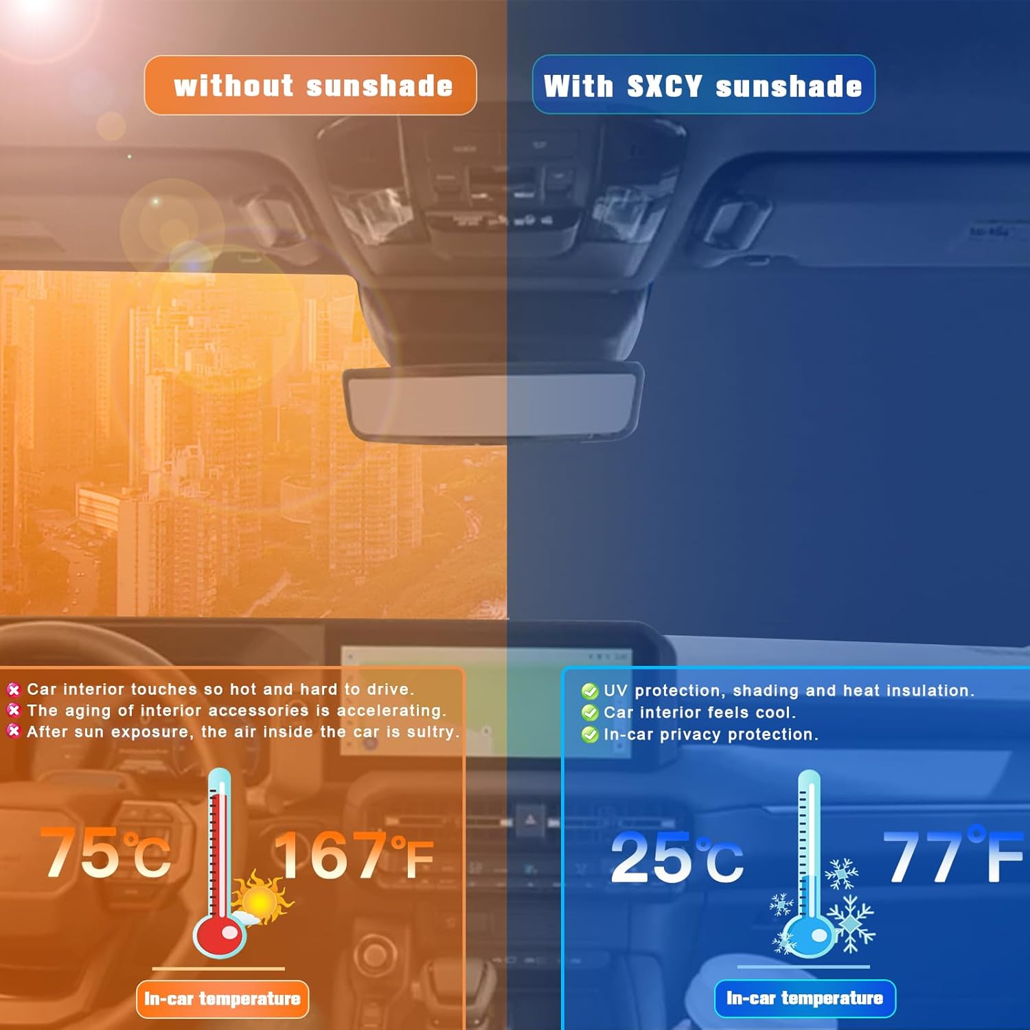 - 2.Sun Protection: Solve your concerns about parking for a long time under the scorching sun,prevent the car's interior from getting sunburned and extend your car interior accessoriesâlife.