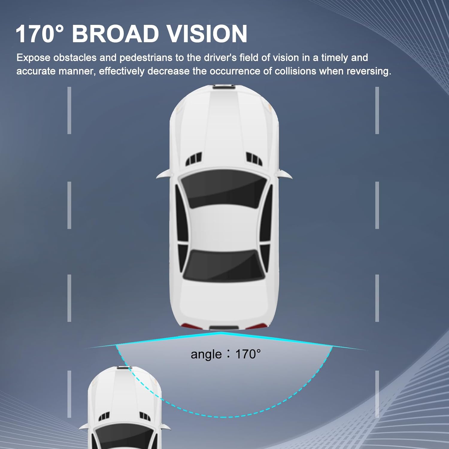 - BROAD VISION: 170°BROAD VISION, 42w(728x582)Rear View camera .Stable Signal & Real-time Image.Expose obstacles and pedestrians to the driver's field of vision in a timely and accurate manner, effectively decrease the occurrence of collisions when reversing.