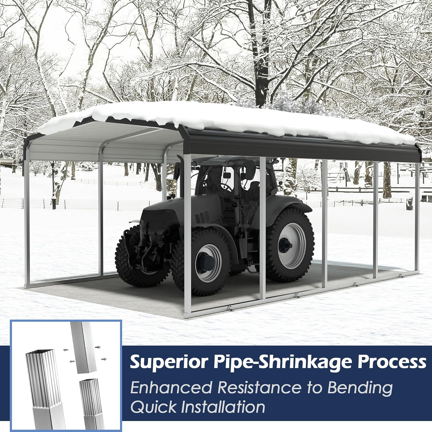 - 【Superior Pipe-Shrinkage Process】Each joint of the metal carport frame undergoes a pipe-shrinkage process. The original steel tubes are pressed under high pressure to form small-size wave tubes, enhancing resistance to bending. This process significantly strengthens the weakest joints of the frame, ensuring greater stability