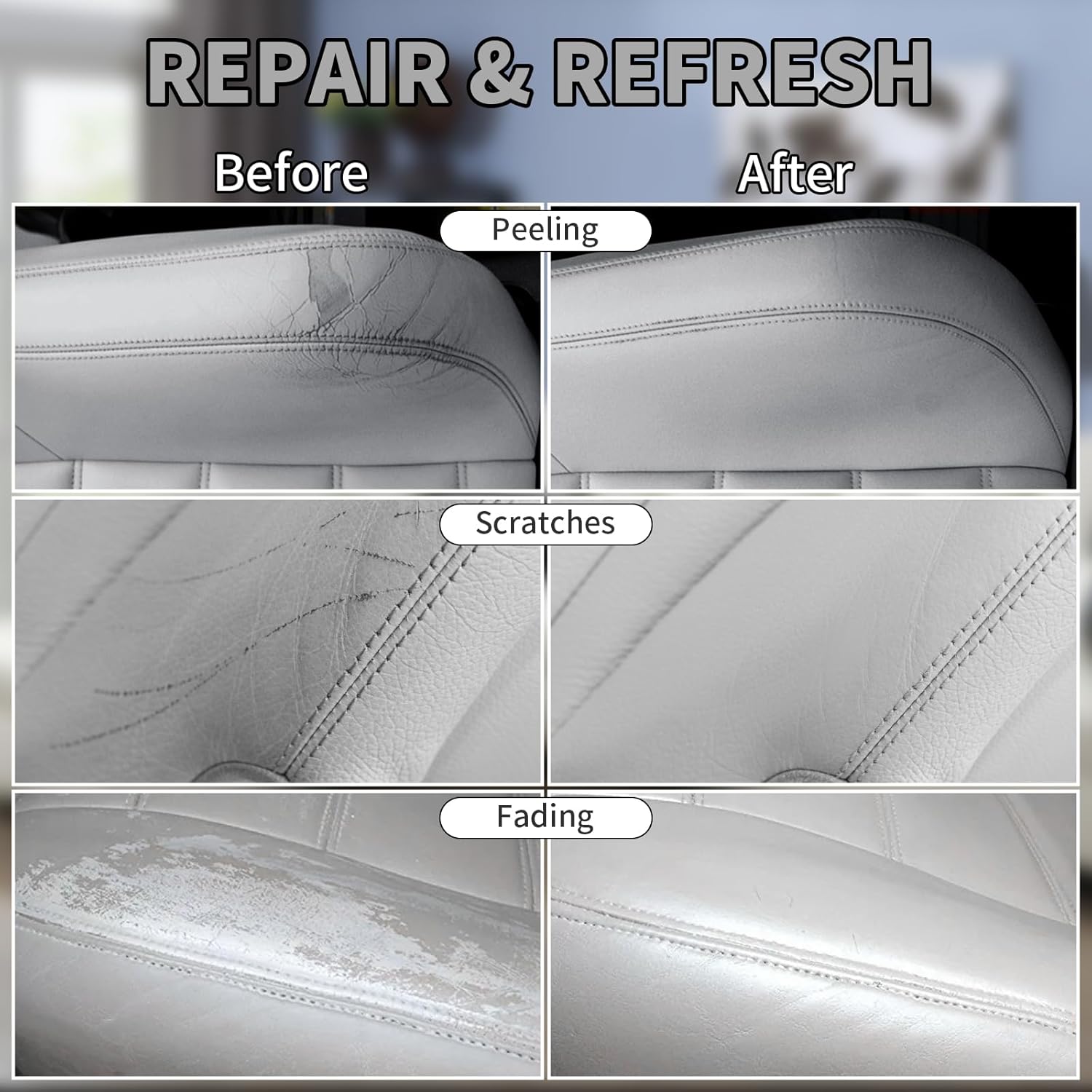 - Leather Scratch Remover: Our leather scratch repair can be used to repair and dye leather color for couch, chairs, boots, jackets, belts, and shoes.Repair surface scratches and scuff marks for leather furniture, car seats,clothing and fix cat scratches