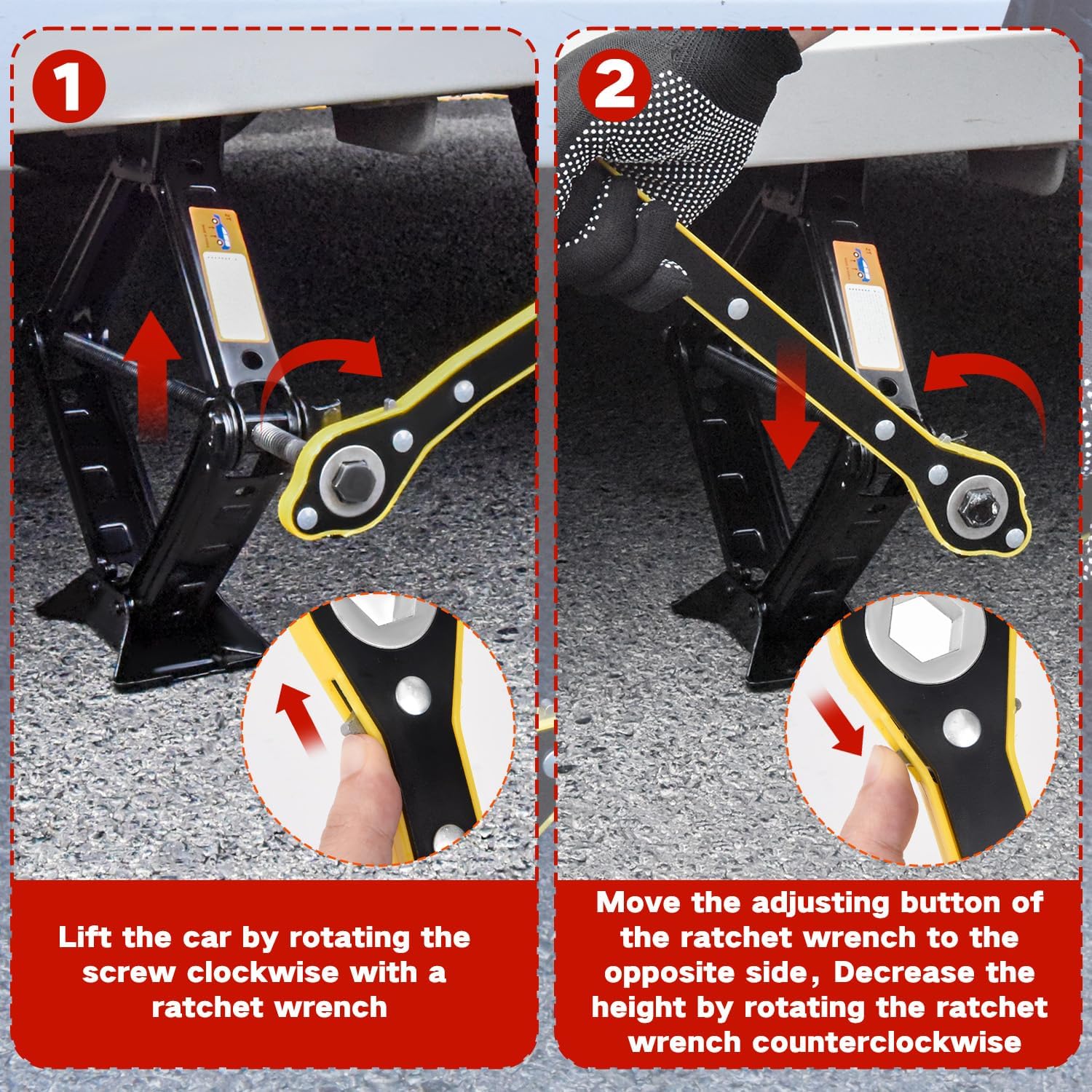 - 【Stable and Secure】The car jack kit is made from high-quality materials and is designed to withstand heavy use. Its corrosion-resistant construction guarantees durability and longevity, making it suitable for any weather conditions.