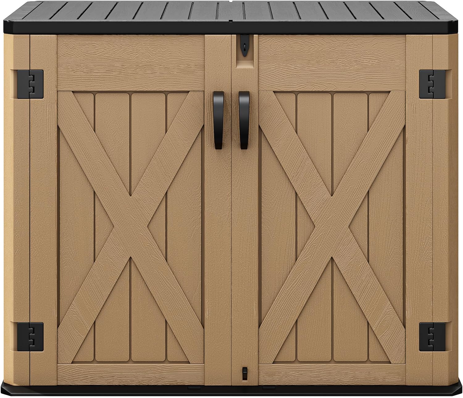 DWVO Outdoor Storage Shed, Weatherproof Resin, 35 Cu Ft Capacity, Horizontal Design, X-Shaped Lockable Door, Suitable for Bike, Garden Tools, Trash Cans, Brown