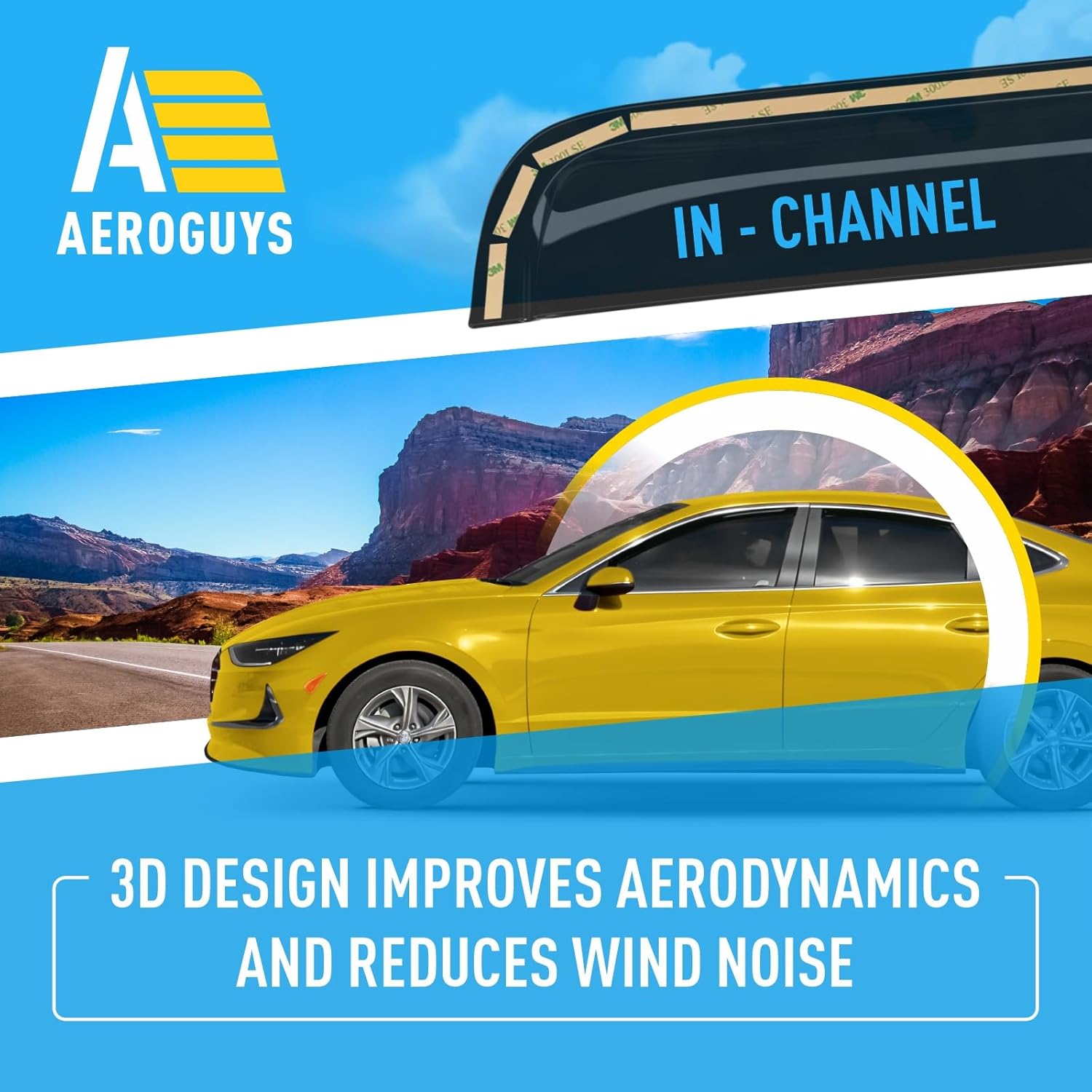 - No Tools Needed, Quick and Easy Assembly – These rain guards are very easy to fit. IN-CHANNEL INSTALLATION provides perfect fit for your car. Just slip it onto your car’s window and your job is done within minutes. There is no drilling or no tools required. Be sure that AEROGUYS window deflectors are water resistant, sun protective and will not bend, break or crack regardless of the weather conditions.