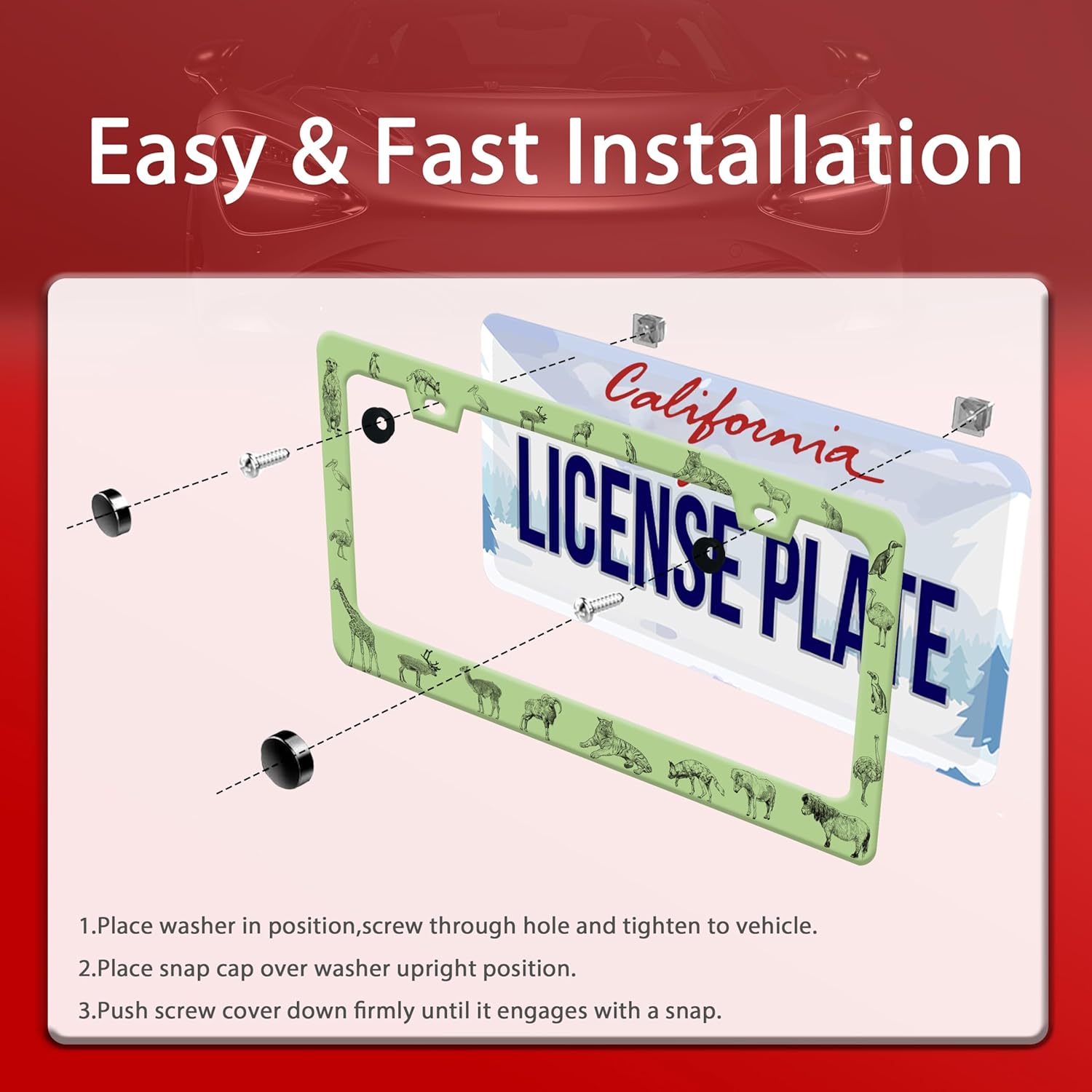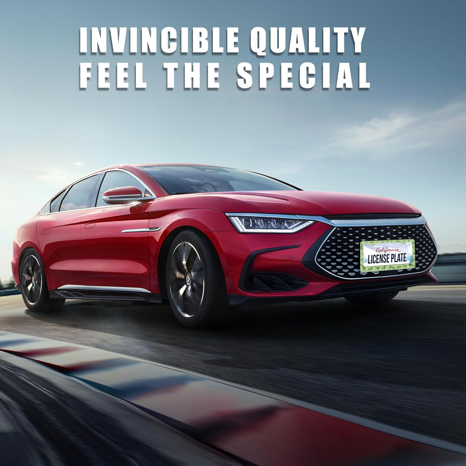 - 【Standard License Plate Size】:Our license plate frame size is 12.2 x 6.3 inches. This license plate frame will fit most of the standard license plates in the United States and Canada, and perfectly match your car license plate accessories.