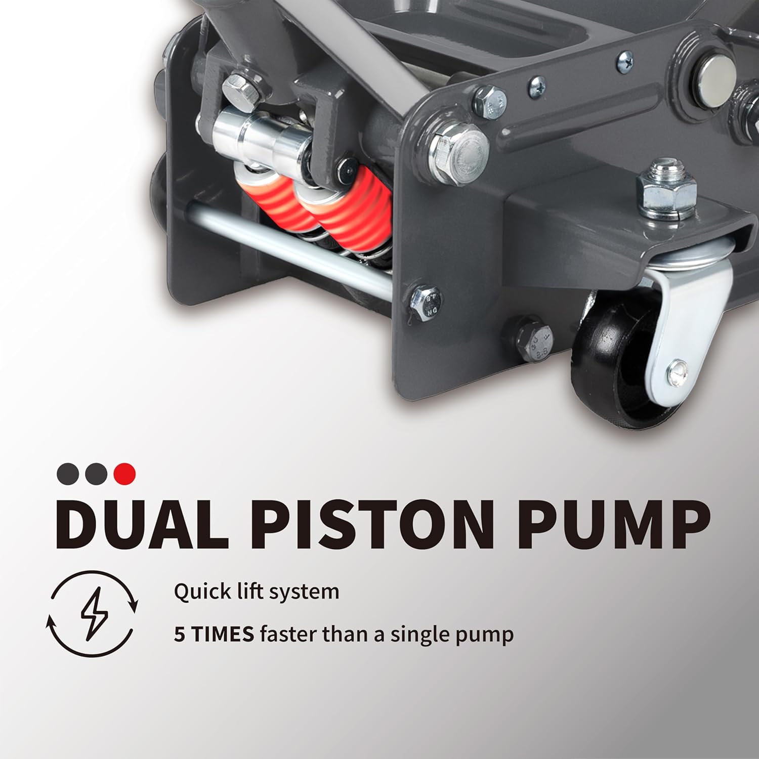 - RAPID PUMP Technology: Equipped with RAPID PUMP technology, this floor jack features a high-speed hydraulic system that allows for quick lifting with fewer pump strokes. This efficiency saves time and effort during vehicle maintenance or repairs.