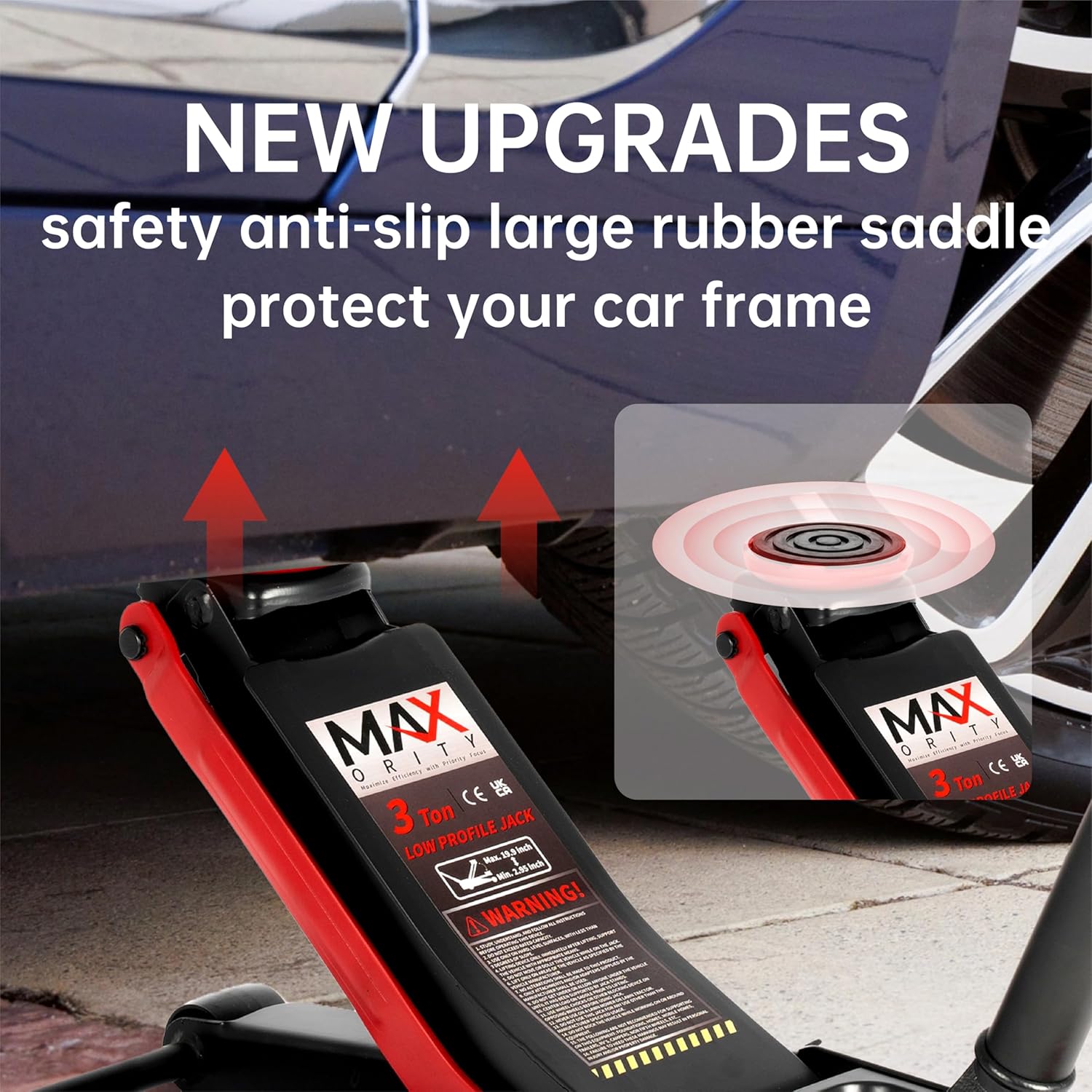 - Durable and Sturdy Construction: Constructed from high-strength steel, this floor jack is built to withstand heavy loads and frequent use. Its robust design ensures longevity and reliability, making it a valuable addition to any professional or home garage.
