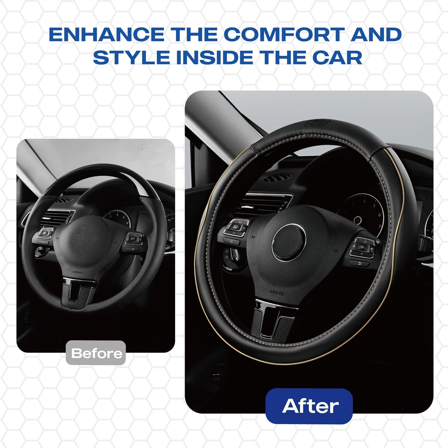 Skechers Memory Foam Steering Wheel Cover,Piping Microfiber Leather Steering Wheel Cover Sporty Universal Fit 14" 1/2-15" Car Wheel Protector for Men Women Fit Suvs,Vans,Sedans,Car,Trucks,Beige