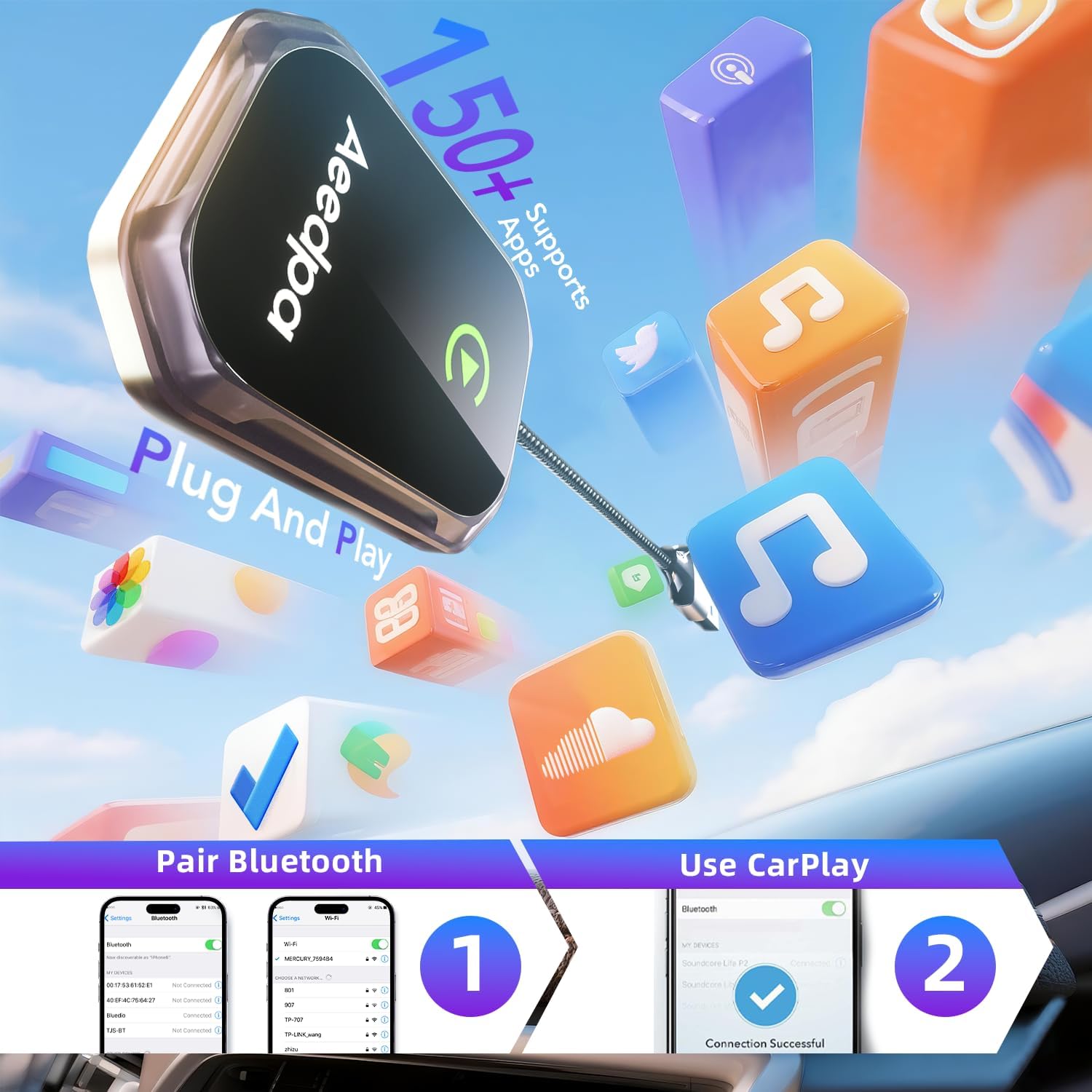 - Specific Uses For Product : Car Audio & Video, Converts Wired to Wireless CarPlay, Wireless Carplay Connectivity