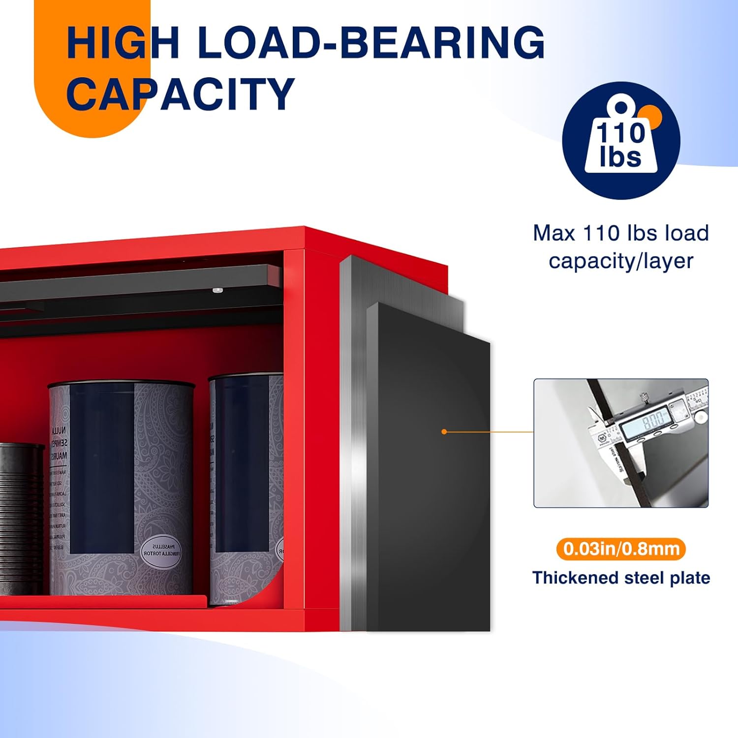 Yizosh Metal Wall Cabinet with Doors, Wall Mounted Storage Cabinet, Floating Tool Cabinet for Kitchen, Basement, Warehouse (Red Black, 13.7" H)