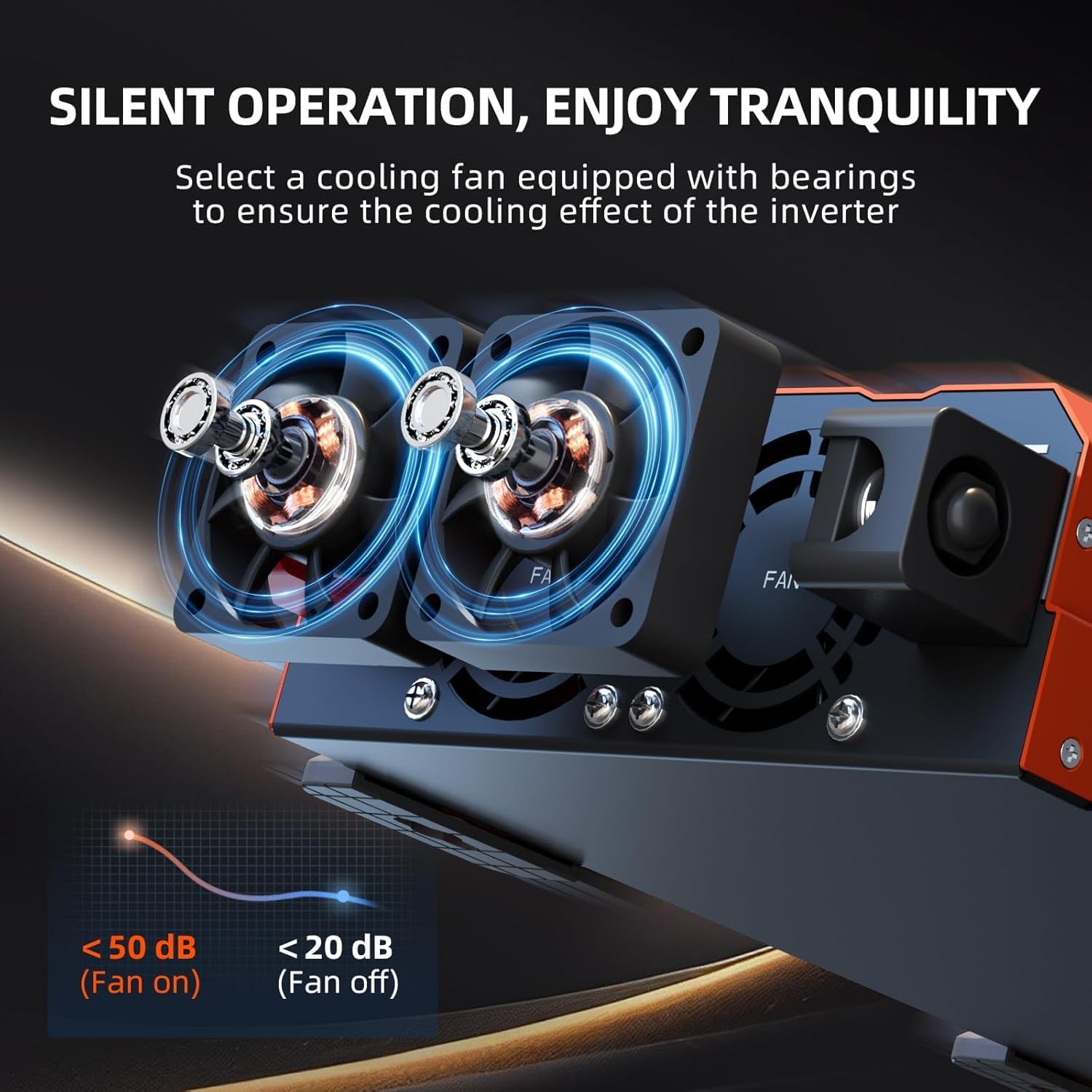 - 【Dual Ball-bearing Fans】The Junbpaw pure sine wave inverter built-in dual ball-bearing fans ensure quieter performance, an extended lifespan, and stable operation for over 50,000 hours.