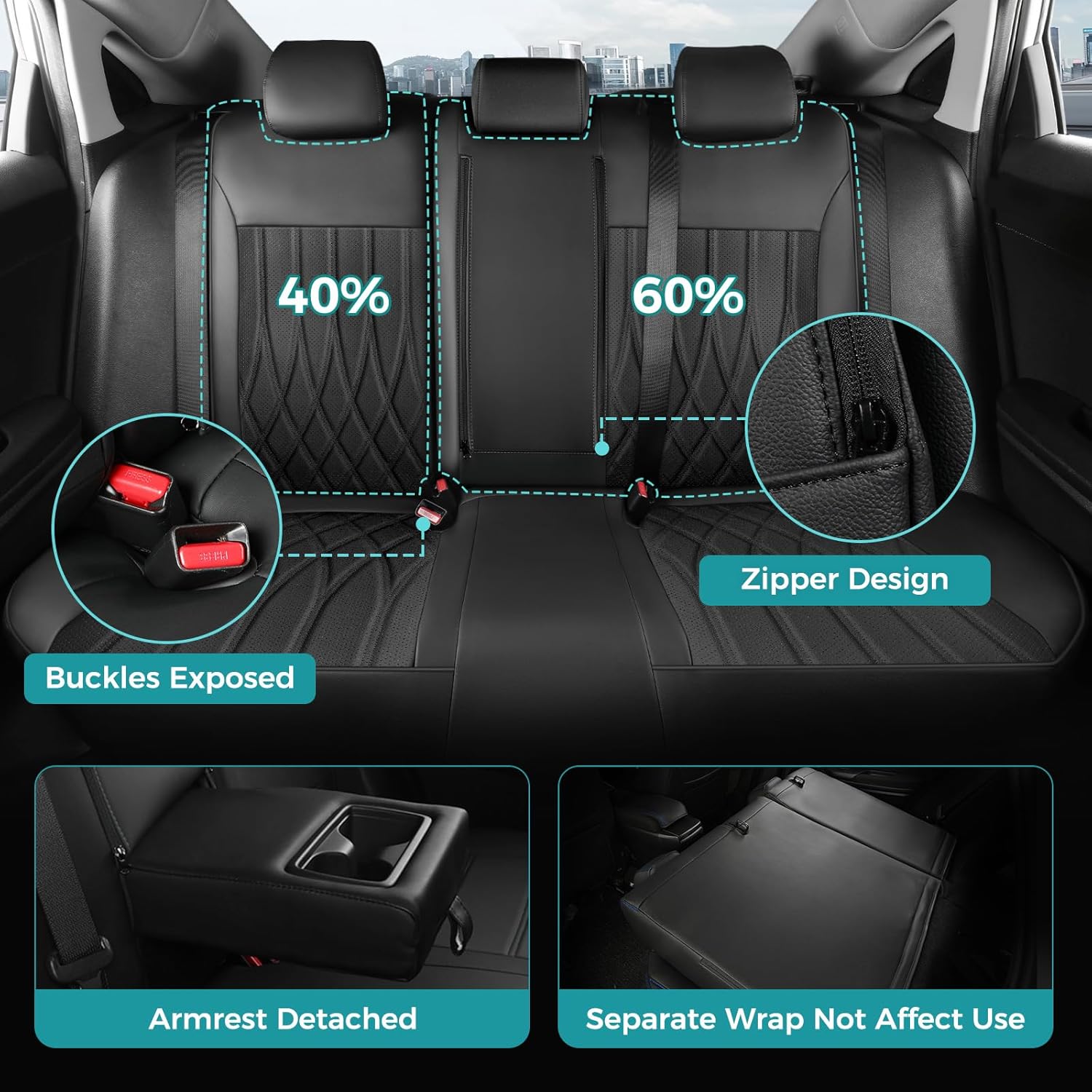 Seat Covers for Honda Civic Sedan EX-L, EX-T, EX, Touring, LX-P, Sport 2016 2017 2018 2019 2020 2021, Faux Leather Car Seats Cover Full Set(Rear Row 40/60 Split & Folding Backrest)-Black