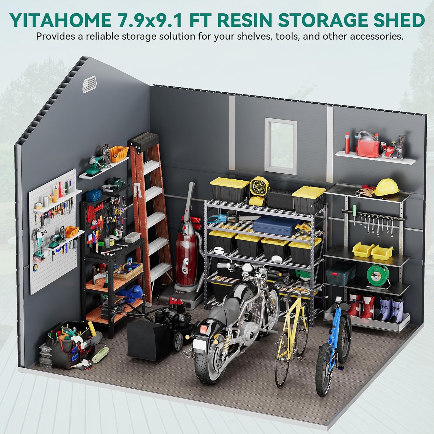 YITAHOME 8x9 FT Outdoor Storage Shed w/o Floor, All-Weather Plastic Shed with Lockable Doors, Window & Vents, Plastic Tool Shed for Backyard, Patio, Poolside, Lawn, Gray