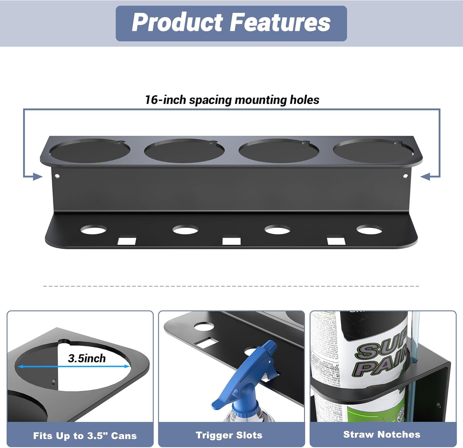 - Wide Compatibility and Smart Design: Holds spray bottles and cans under 3.5 inches in diameter. Includes deep cups, spray trigger slots, and notches for straws like WD-40 for convenient use