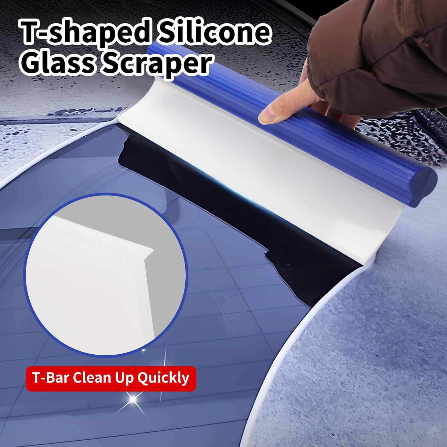 • Efficient Cleaning with T-Bar Design: The silicone scraper is 30cm/12 inch wide,The unique T-shaped squeegee design provides a larger cleaning area, quickly and efficiently removing water stains and dirt from windows and car surfaces